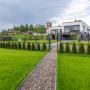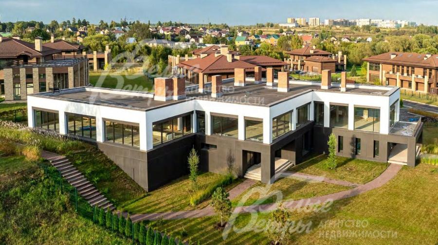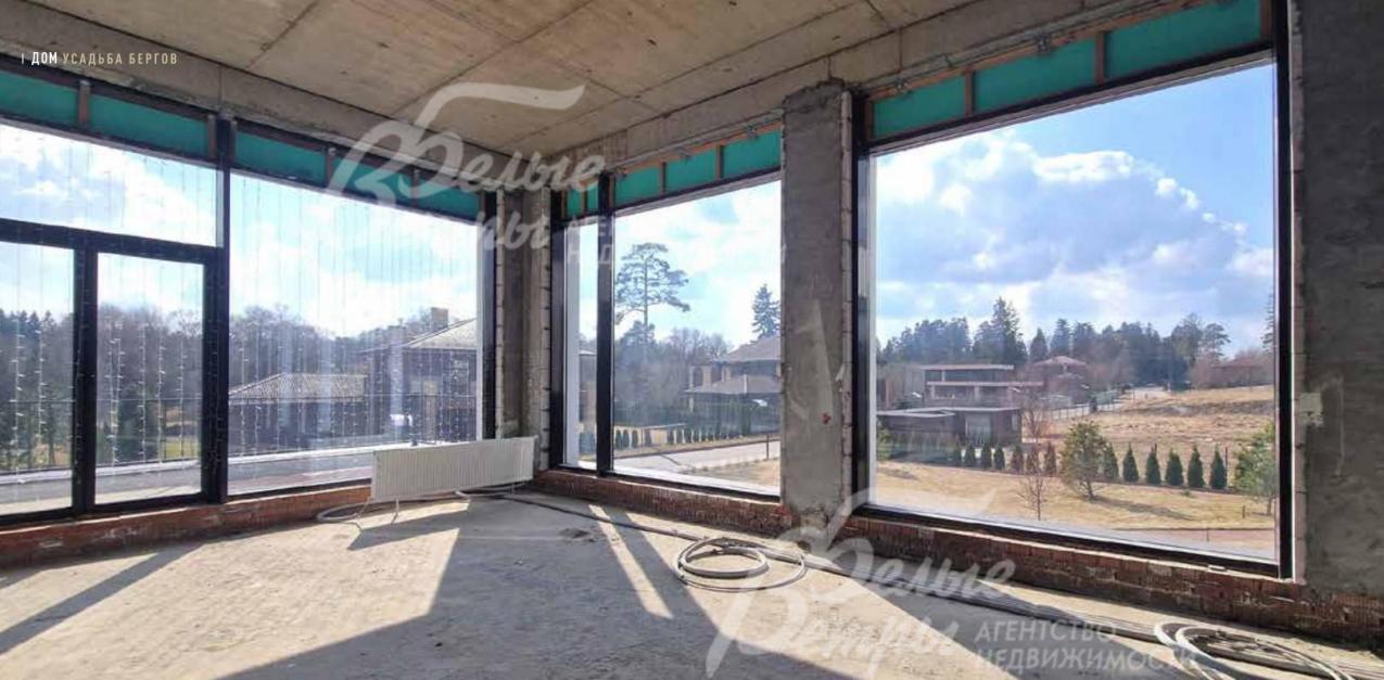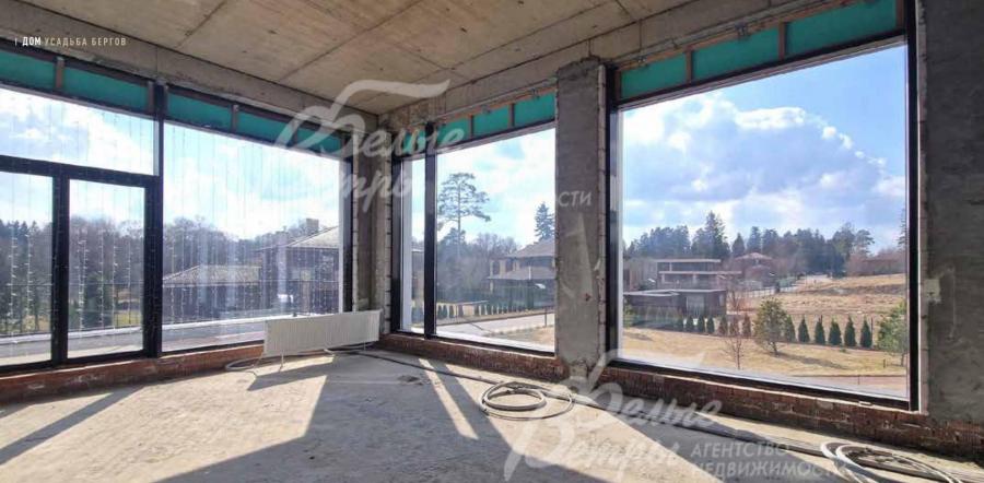 Просторный современный двухэтажный коттедж 940 кв.м “под отделку” с бассейном в клубном элитном поселке «Усадьба Бергов». Дом с панорамным остеклением расположен на солнечном участке 28 соток с перепадом высот, благодаря которому есть выход на участок с обоих этажей и откуда открывается шикарный вид на окрестности поселка. Свободная планировка дома позволяет спроектировать до 5 спален с санузлами, изолированные или объединенные кухню, гостиную и столовую, кабинет. На рельефном участке выполнен ландшафтный дизайн, высажены молодые деревья и цветущие растения, организована большая парковка на 6 машиномест.