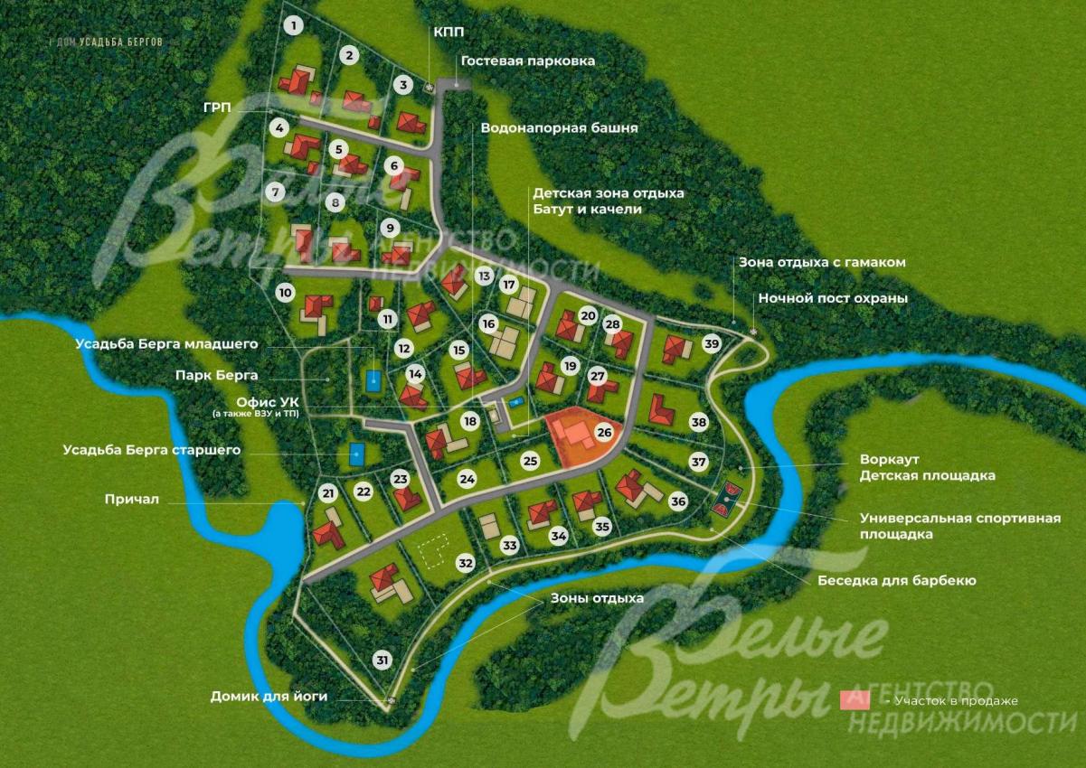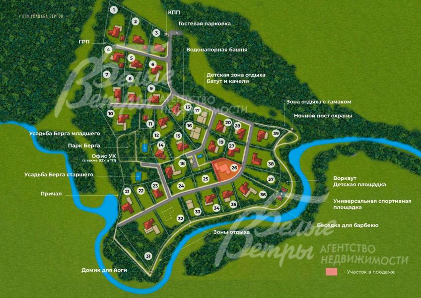 Коттеджный поселок премиум класса "Усадьба Бергов" находится в красивейшем месте на берегу реки Десна, в окружении лесного массива с сохраненными усадебными парками, отреставрированными приусадебными постройками культурного наследия. В поселке более 5 км обустроенных прогулочных зон, в т.ч. набережная с местами для отдыха и спорта, есть причал с лодками. В 5 минутах езды на авто «Русская теннисная академия» (РТА)- крупнейший современный теннисный клуб европейского уровня, торговый центр и супермаркет «Перекресток», детский сад и школа Vnukovo International School и несколько других образовательных учреждений. Инфраструктура п.Первомайский 15 мин пешком. Удобный выезд на Киевское, Боровское, Минское шоссе, в т.ч. платник до Москва Сити.