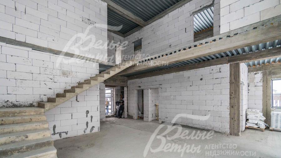 Описание внутренней отделки: под черновую отделку. На полу бетонная стяжка. Ж/б лестничный марш шириной 1.2 м с удобным подъемом. Электричество, канализация, водоснабжение заведены на территорию участка. Газ проходит недалеко от границы участка. Входная дверь стеклопакет REHAU – INTELIO 80.