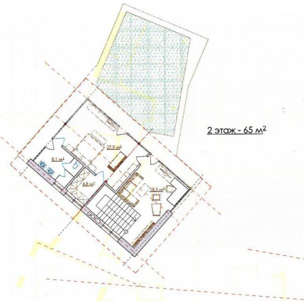 2-ой этаж: Хозяйский блок: комната отдыха - кабинет 18.5 кв.м, спальня 28 кв.м с с/узлом 8 кв.м с гардеробной 5 кв.м и выходом на балкон/террасу около 40 кв.м