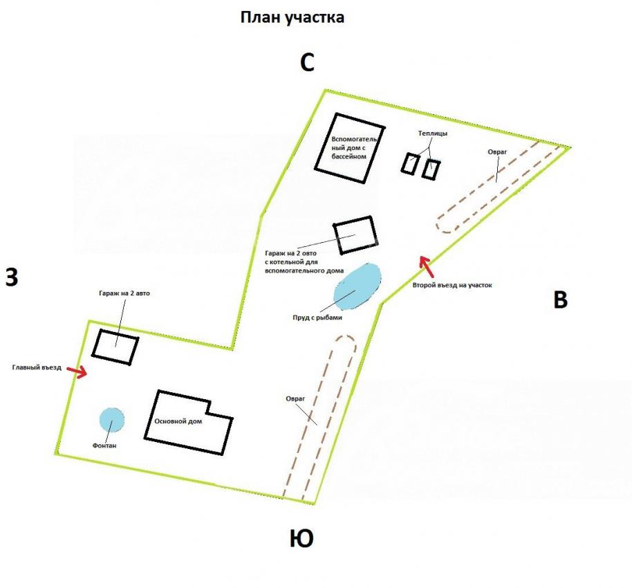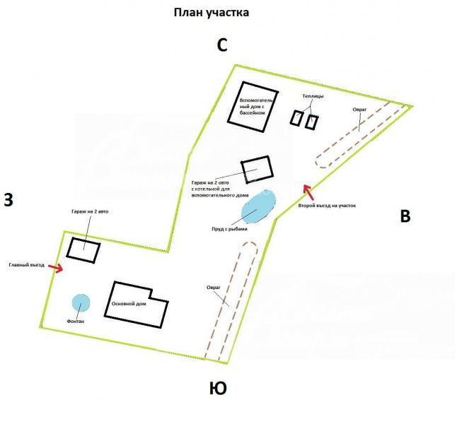 Благоустройство участка: Выполнен ландшафтный дизайн: более 100 взрослых деревьев и различных кустарников, пруд 15х6 м с рыбами, большой фонтан из камня, площадка для 8 авто, вымощенные брусчаткой дорожки, уличное освещение, по участку проходит овраг с ручьем, зона барбекю. Вокруг дома и на участке - дренаж.