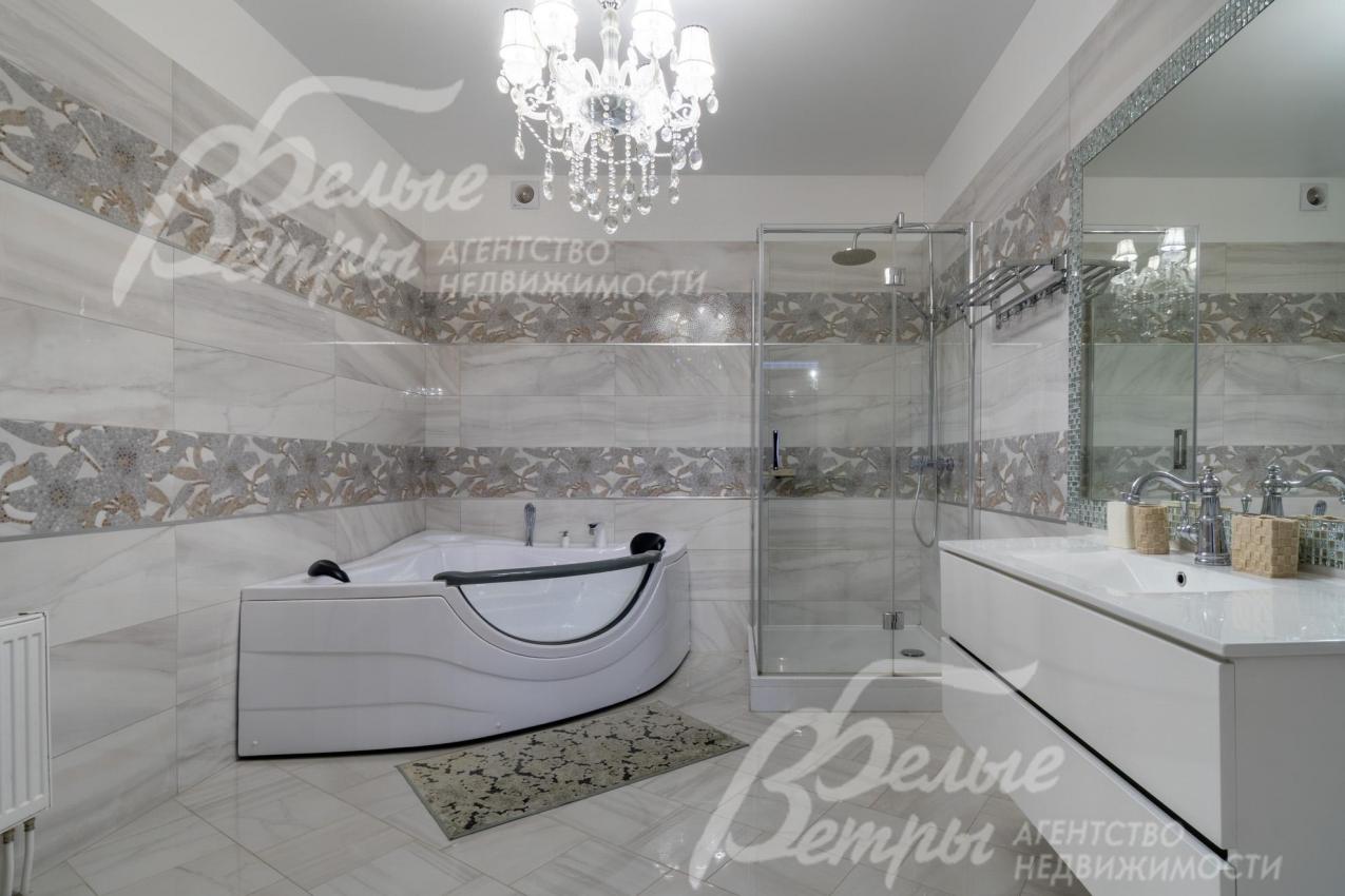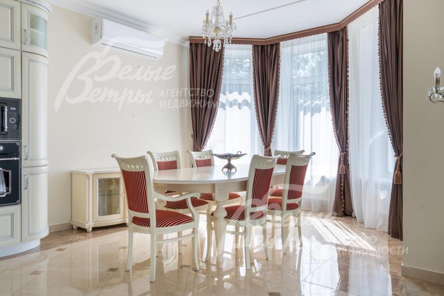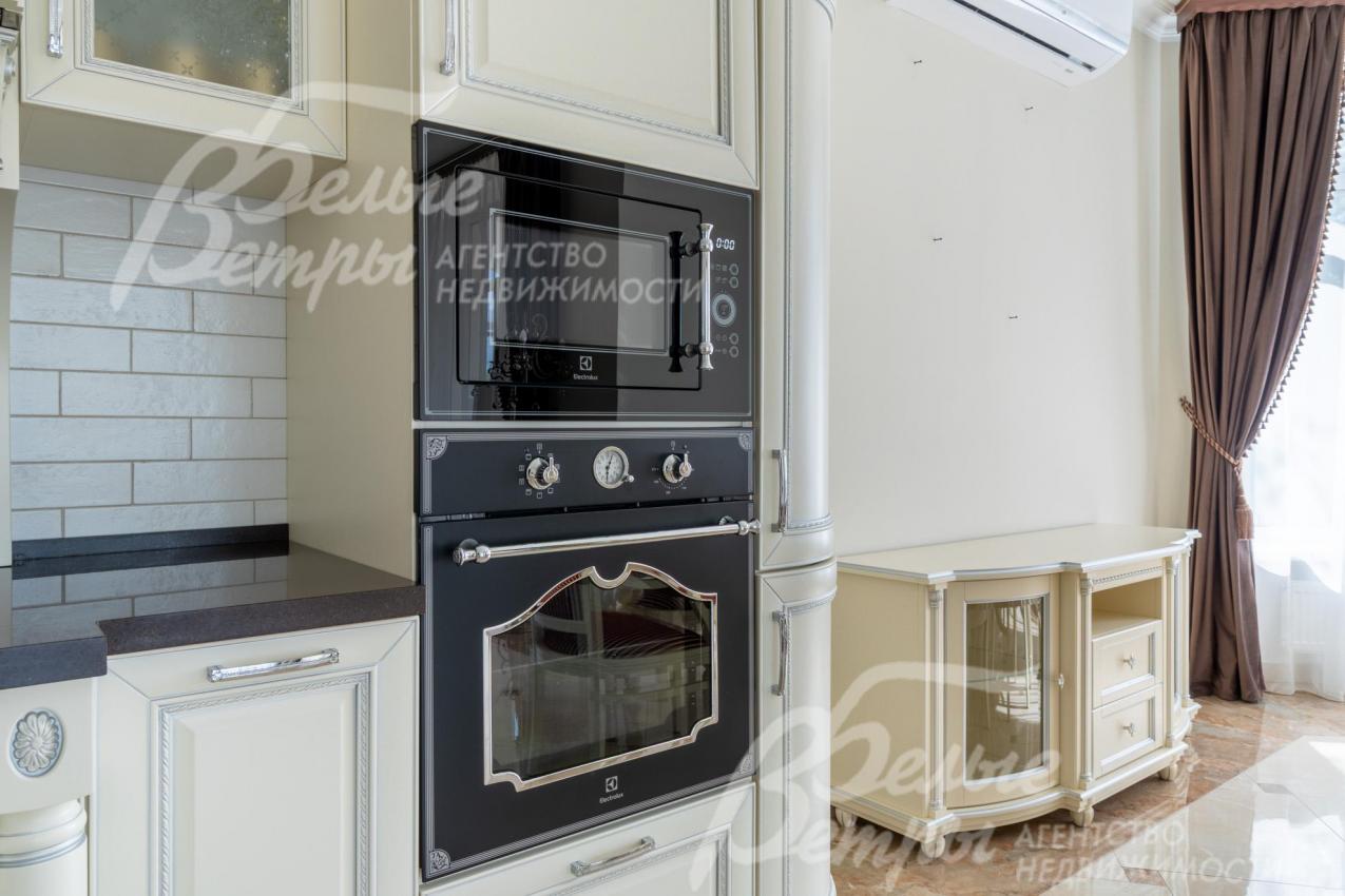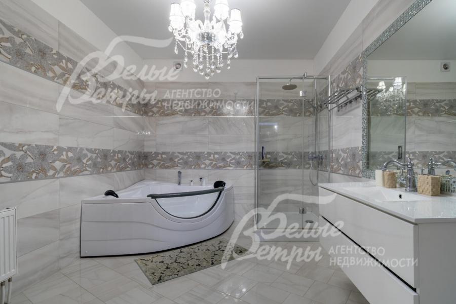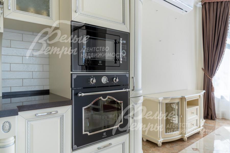 Мебель, оборудование: мебель в классическом стиле, преобладает цвет слоновой кости. На кухне: гарнитур из массива ольхи со встроенной техникой (духовая печь, газовая плита, микроволновая печь марки Electrolux и посудомоечная машина марки Bosch), двухстворчатый холодильник LG, обеденный стол на 6 персон со стульями. В помещениях - изысканная мягкая и корпусная мебель: диваны, стулья, комоды, стеллажи, тумбы из массива дерева. В спальнях - двуспальные кровати. Санузлы полностью укомплектованы сантехникой, в том числе душевыми и джакузи