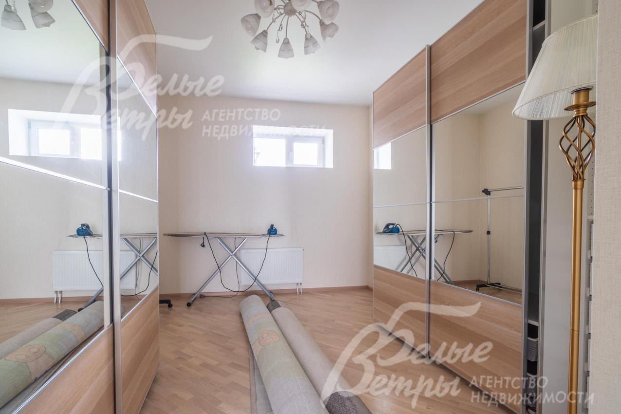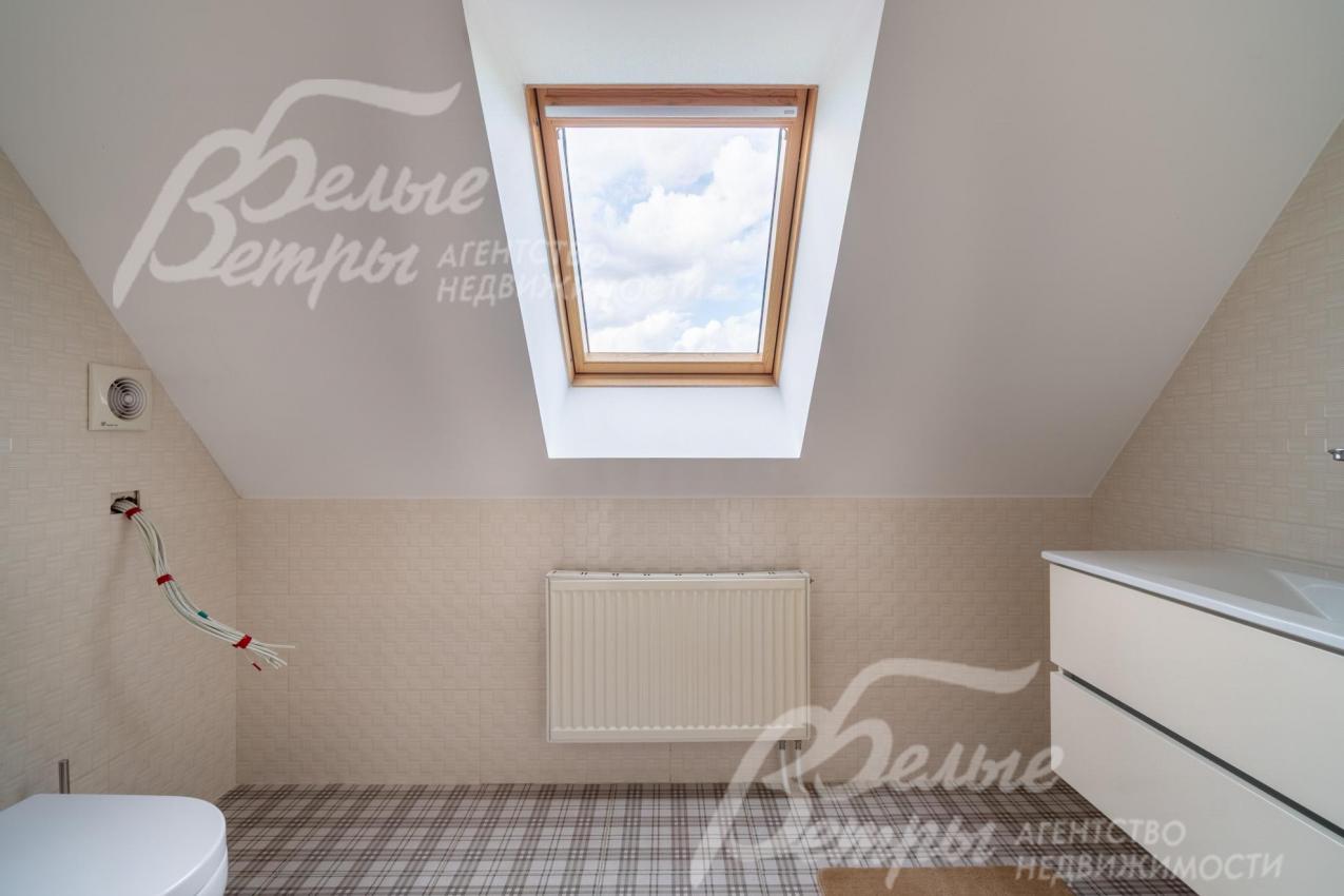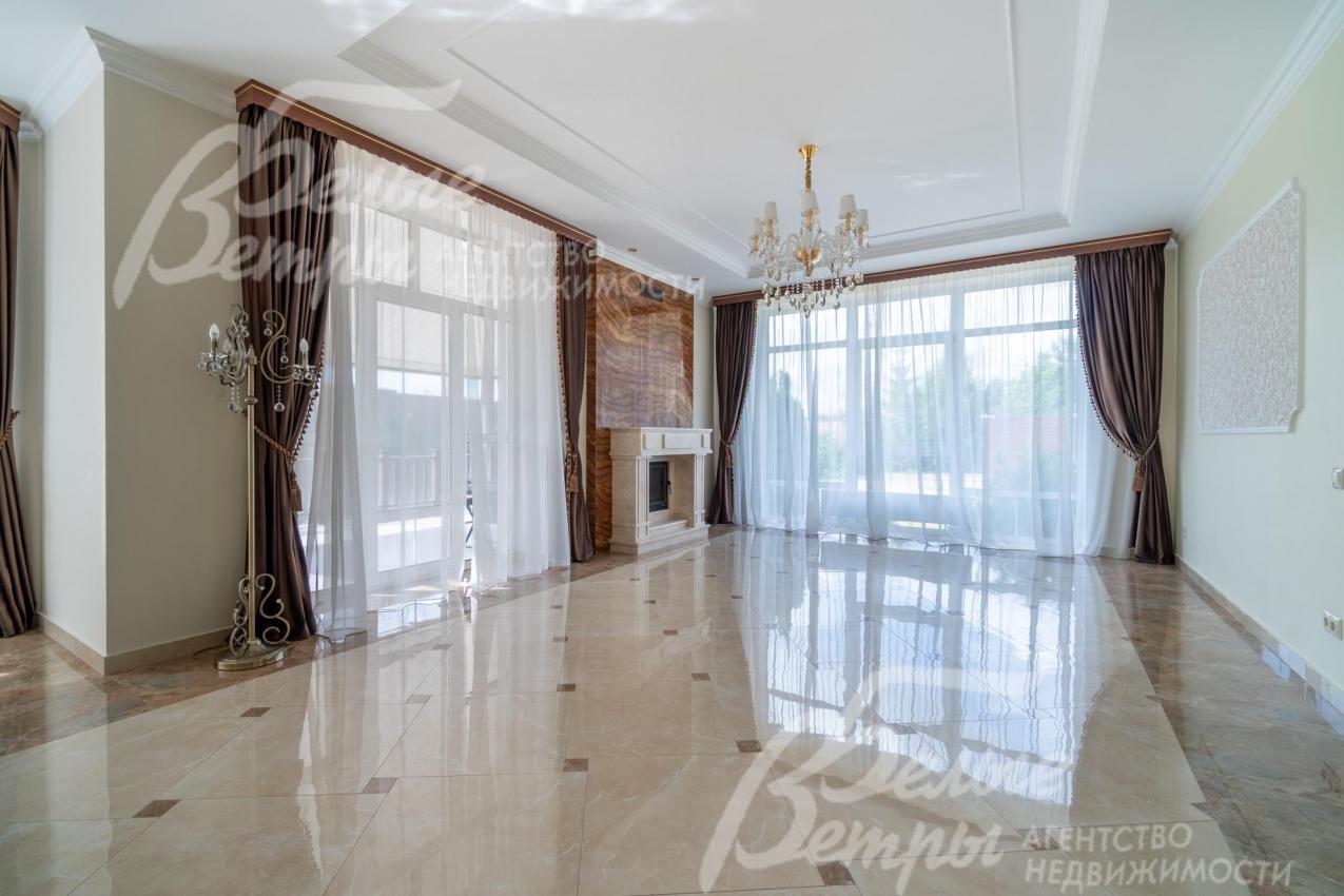 Описание внутренней отделки: в доме выполнена отделка под ключ, интерьер оформлен в стиле современной классики. Стены отделаны с использованием краски и обоев. На полу - плитка с подогревом (часть 1-го этажа и санузлы 2-го и мансардного этажей) и паркетная доска. Потолки гипсокартонные. Установлены стальные напольные радиаторы (KERMI), межкомнатные двери из массива ясеня, пластиковые подоконники. На второй этаж ведёт лестница на железобетонном каркасе с ограждением и ступенями из натурального дуба. Гостиную украшает камин, отделанный бежевым мрамором