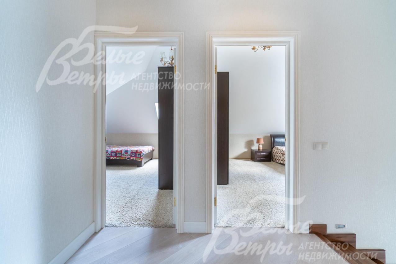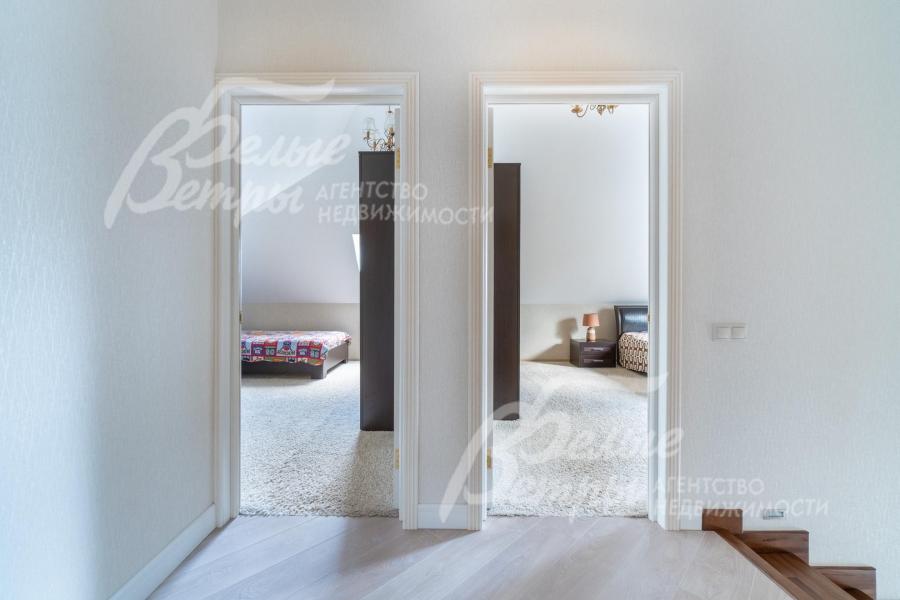 2-ой этаж: холл 9 кв.м, мастер-спальня 27 кв.м с гардеробной 12 кв.м и санузлом с ванной и душевой 12 кв.м, спальня 23 кв.м, спальня 22 кв.м, санузел с ванной-джакузи 8 кв.м