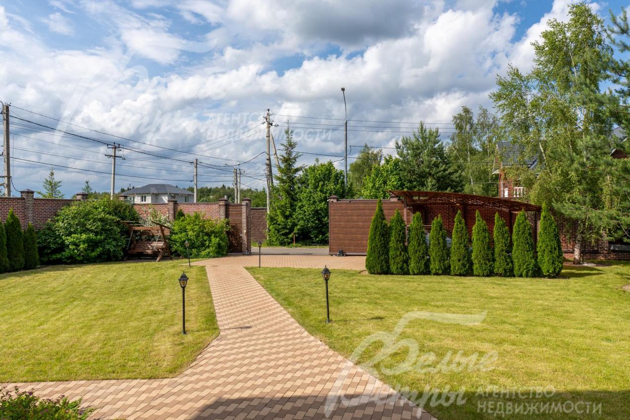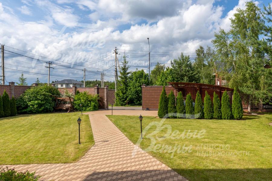 Благоустройство участка: участок выровнен, реализован проект ландшафтного дизайна: высажены поле-газон, деревья (15 елей, 50 туй, 1 сосна, взрослые березы), выполнено декоративное освещение вдоль дорожек (установлены фонари), дорожки и место под парковку выложены плиткой на бетонной основе. По периметру участка проходит дренажная система