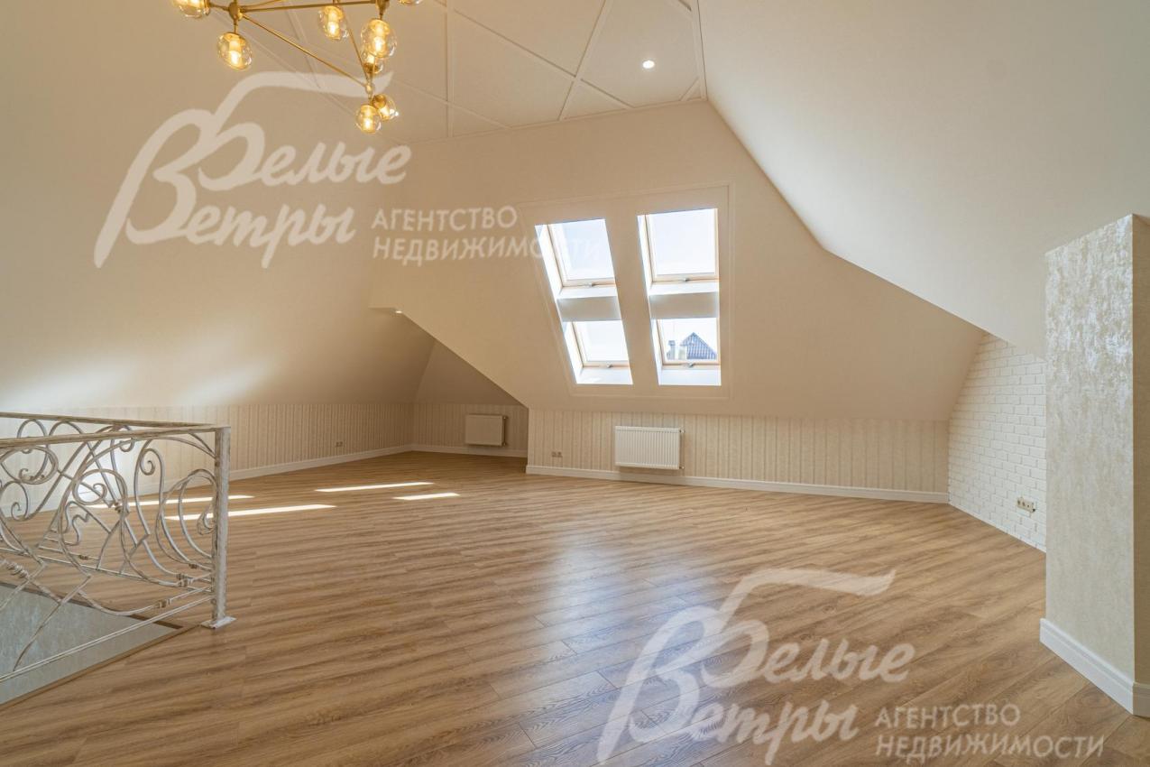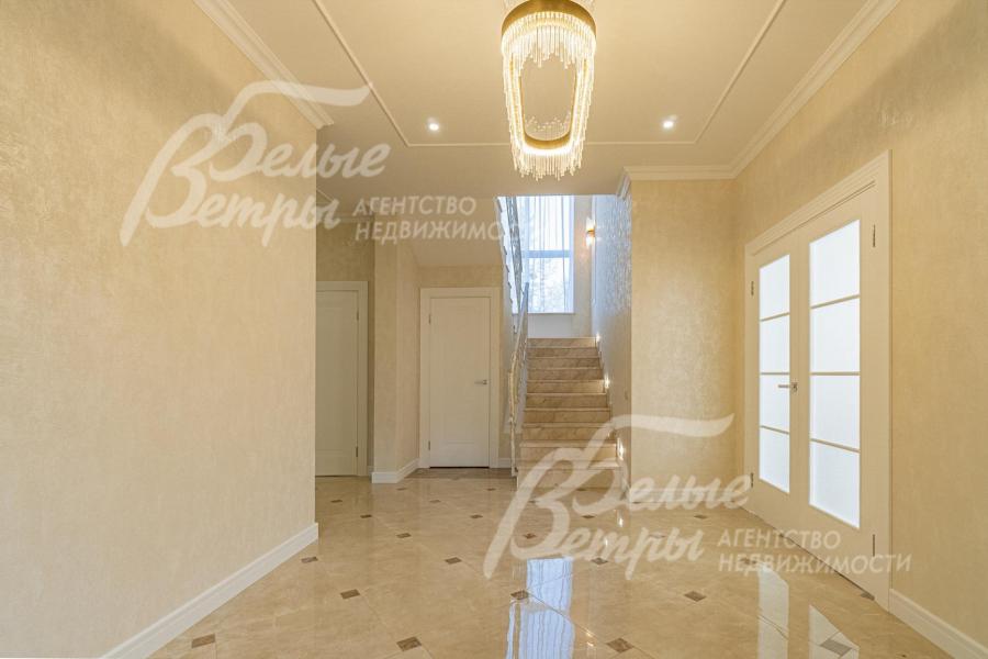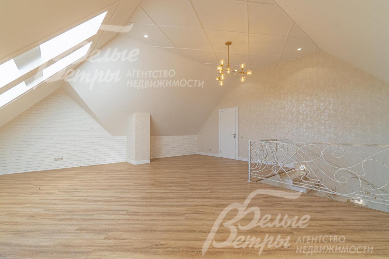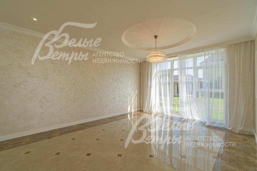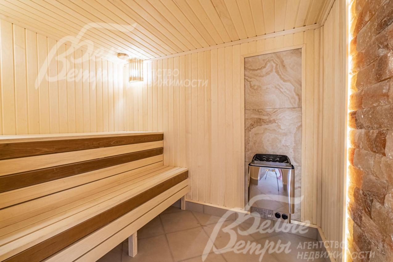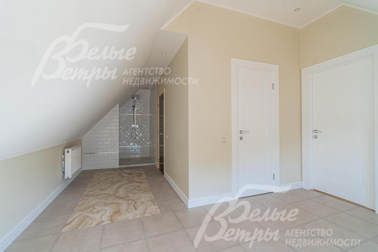 Описание внутренней отделки: отделка выполнена в современных мотивах, преимущественно в светлых тонах, с использованием дорогих материалов. На стенах декоративная штукатурка (Венецианка), обои с текстильными вставками, в санузлах - керамогранит. В сауне - вставки из гималайской соли. В мастер-спальне на стене декоративное панно из гипса. Полы: 1 этаж - керамогранит с водяным подогревом, 2 этаж - паркетная доска, мансарда - ламинат высокого класса. Лестница ж/б монолитная стандартной ширины, ступени мраморные CREMA MARFIL (месторождение камня - Италия) с подсветкой, поручни - художественная ковка. Потолки подвесные ГКЛ фигурные с различной подсветкой. В 2-х спальнях - натяжной потолок, в мастер-спальне - ГКЛ фигурный с различной подсветкой. Установлена вся сантехника GAPPO (немецкое качество). Все коммуникации разведены под ключ. Трубы REHAU, радиаторы стальные Kermi. Там, где окна от пола, установлены внутрипольные конвекторы. Э/э Legrand. Подоконники мраморные.