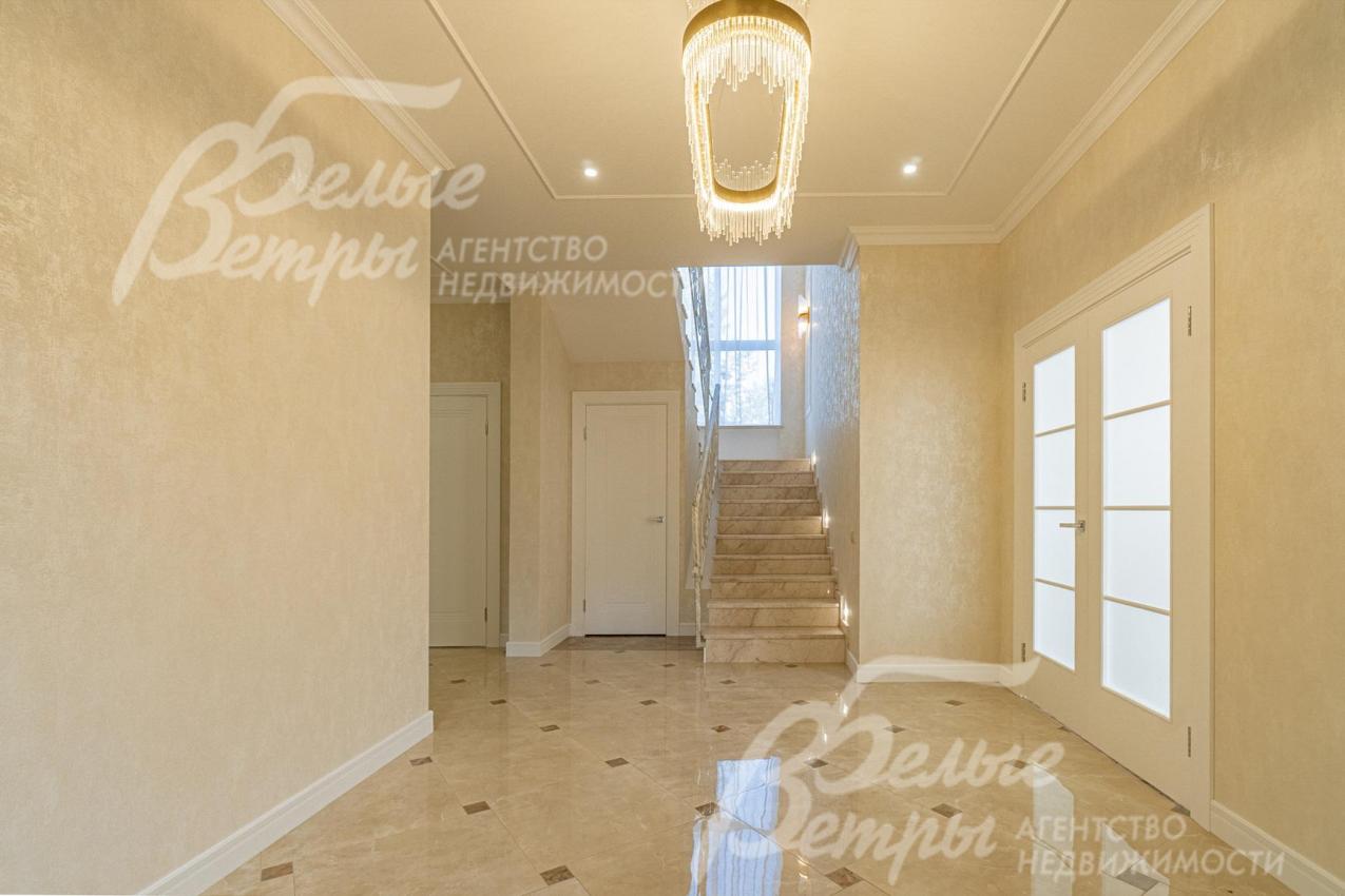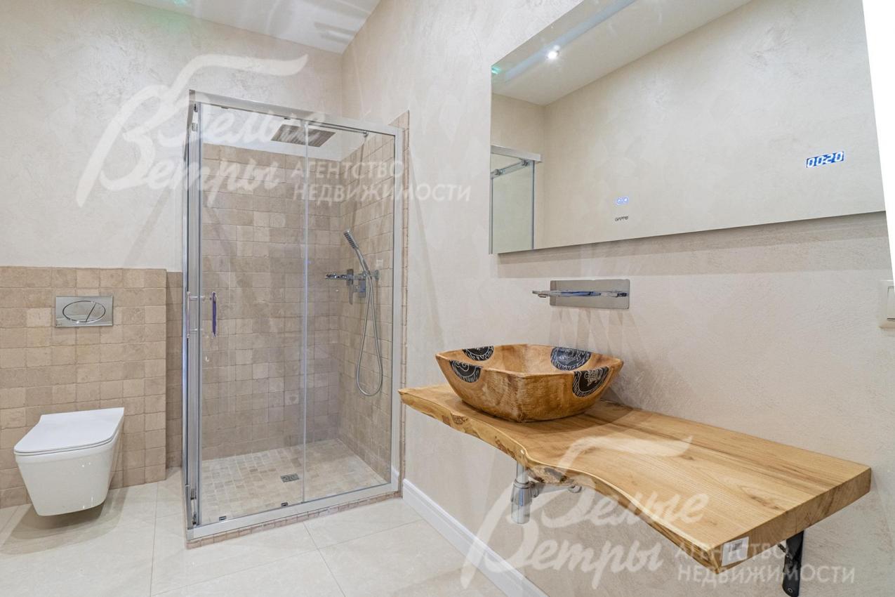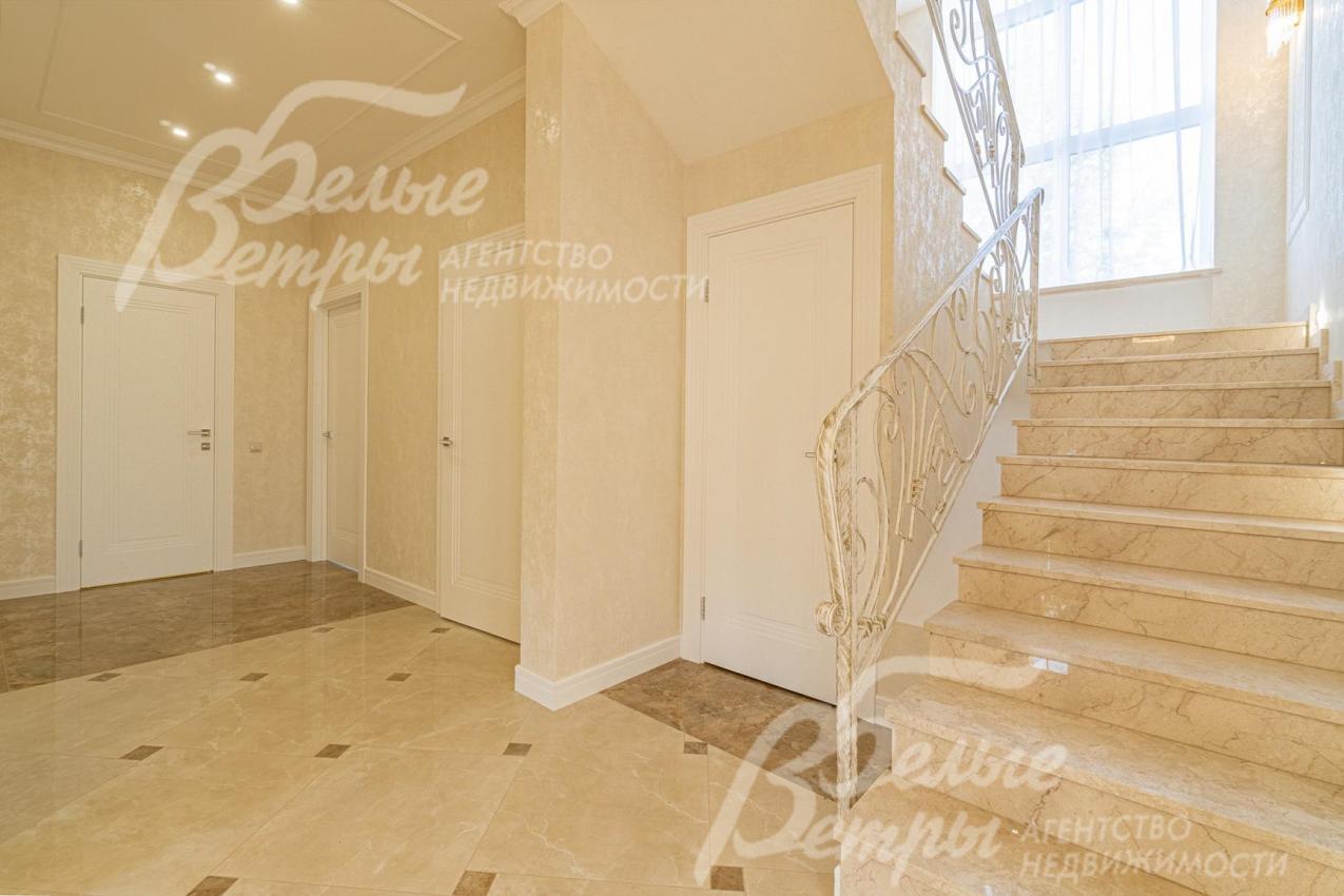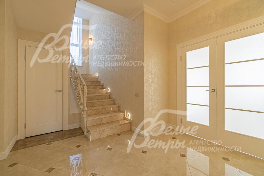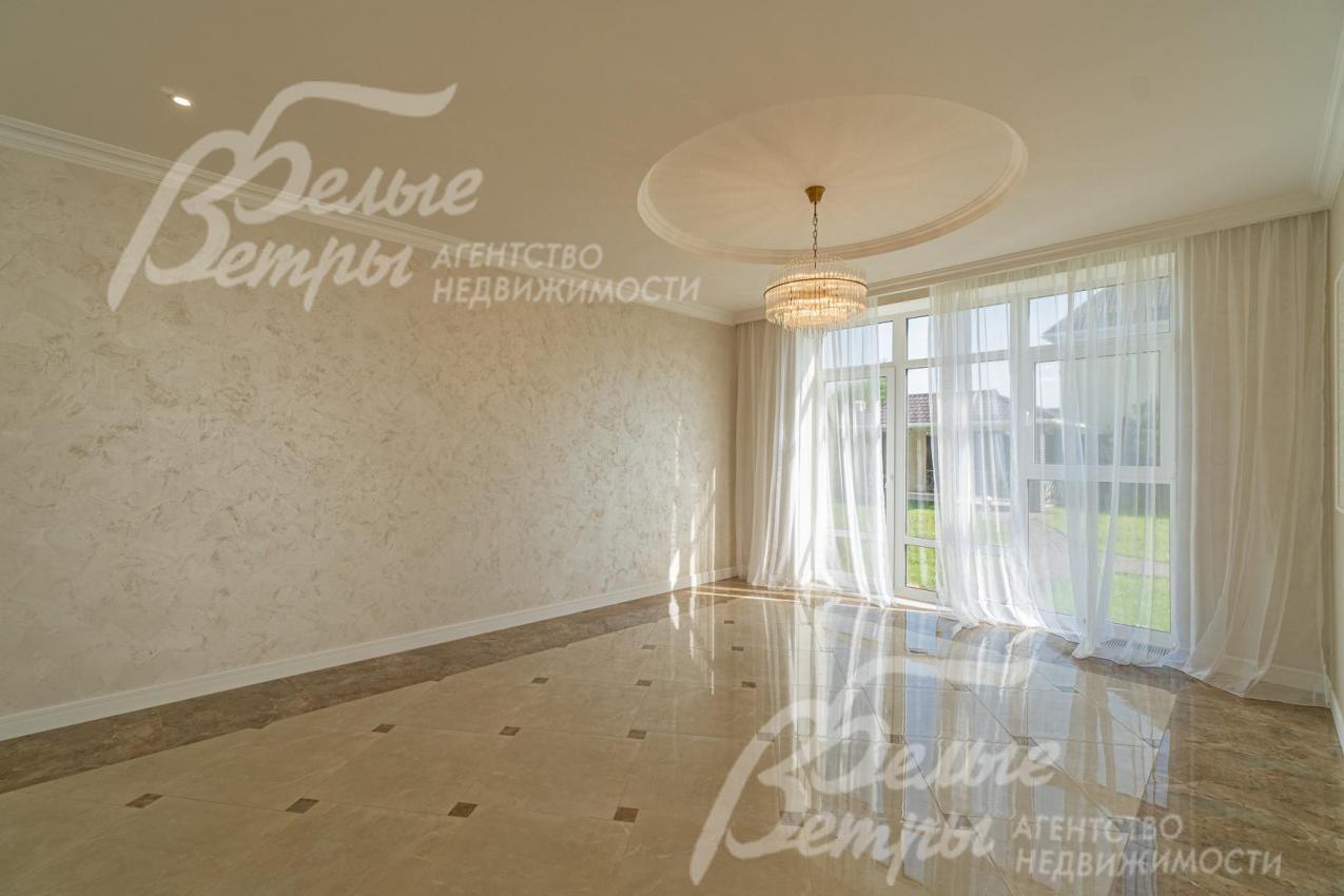 Описание внутренней отделки: отделка выполнена в современных мотивах, преимущественно в светлых тонах, с использованием дорогих материалов. На стенах декоративная штукатурка (Венецианка), обои с текстильными вставками, в санузлах - керамогранит. В сауне - вставки из гималайской соли. В мастер-спальне на стене декоративное панно из гипса. Полы: 1 этаж - керамогранит с водяным подогревом, 2 этаж - паркетная доска, мансарда - ламинат высокого класса. Лестница ж/б монолитная стандартной ширины, ступени мраморные CREMA MARFIL (месторождение камня - Италия) с подсветкой, поручни - художественная ковка. Потолки подвесные ГКЛ фигурные с различной подсветкой. В 2-х спальнях - натяжной потолок, в мастер-спальне - ГКЛ фигурный с различной подсветкой. Установлена вся сантехника GAPPO (немецкое качество). Все коммуникации разведены под ключ. Трубы REHAU, радиаторы стальные Kermi. Там, где окна от пола, установлены внутрипольные конвекторы. Э/э Legrand. Подоконники мраморные.