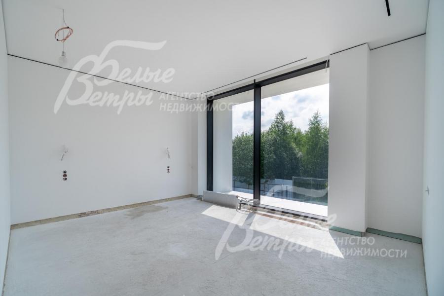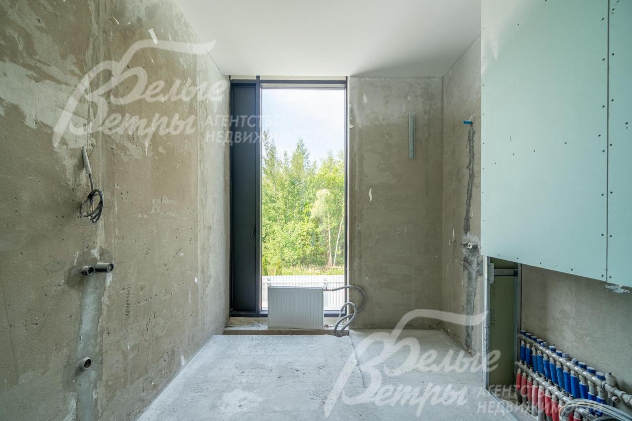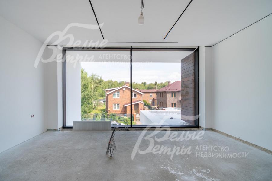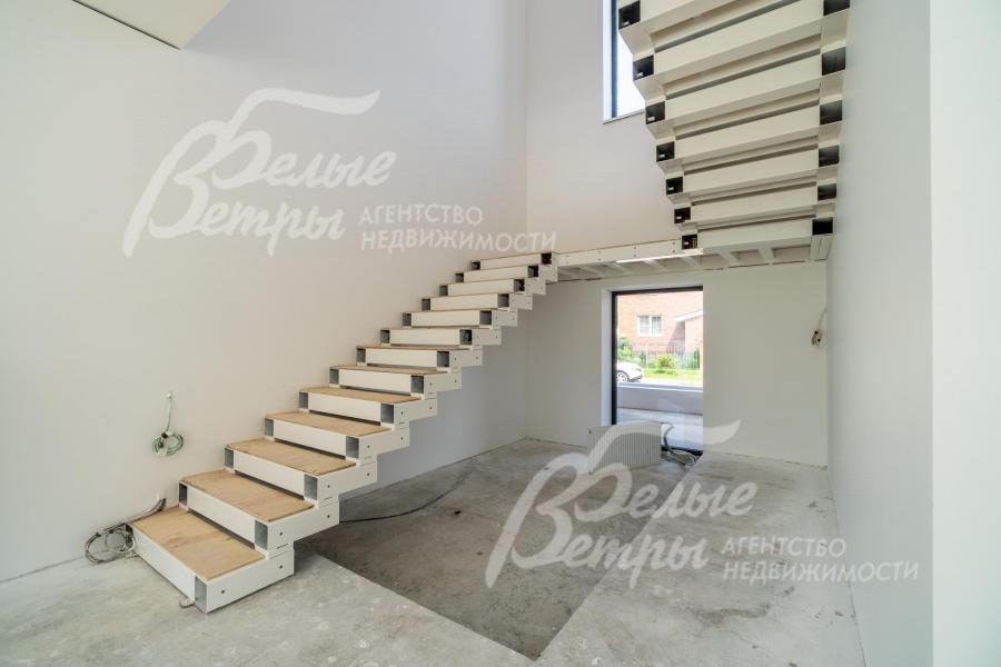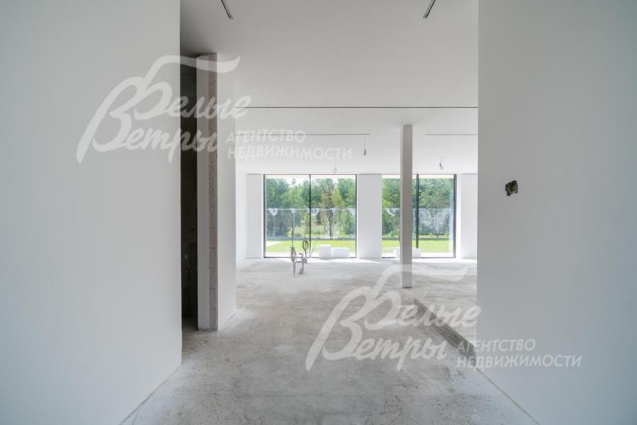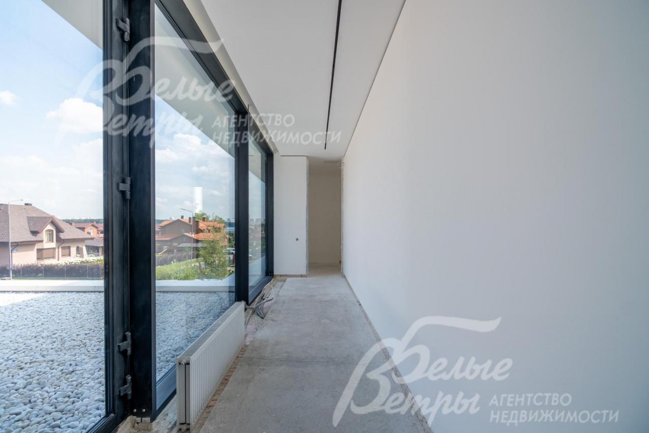 Описание внутренней отделки: дом готов к финишной отделке (White Box): стены возведены, оштукатурены и прошпаклеваны, установлена система централизованной вентиляции с кондиционированием. Есть биокамин. На второй этаж ведёт лестница из стали, запланировано стеклянное ограждение (сделаны закладные). Санузлы оснащены инсталляционными системами и смесителями, в том числе скрытыми душевыми системами. Предусмотрены двери до потолка