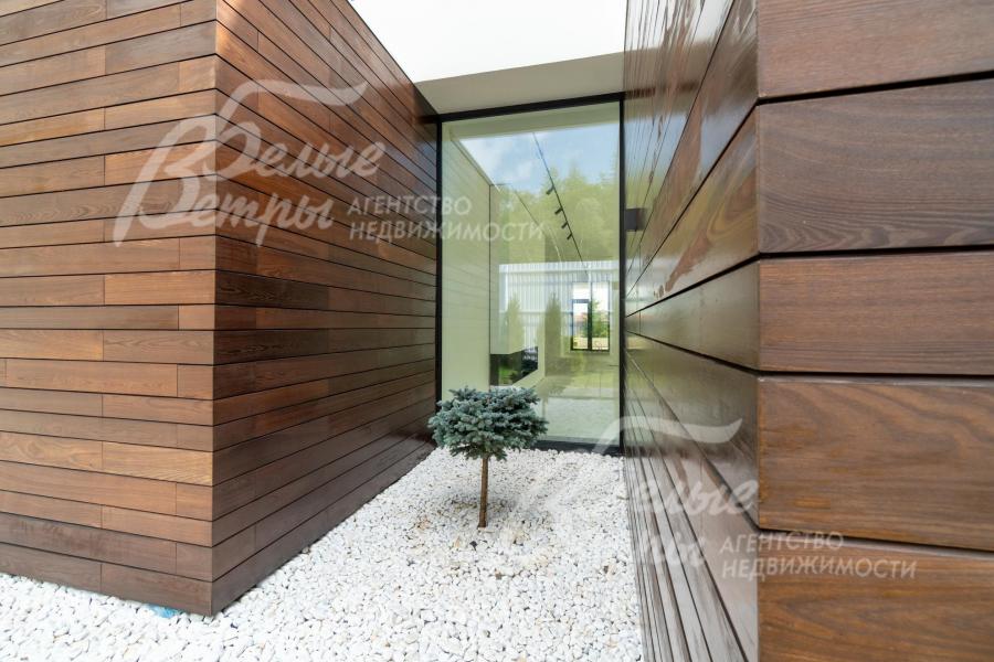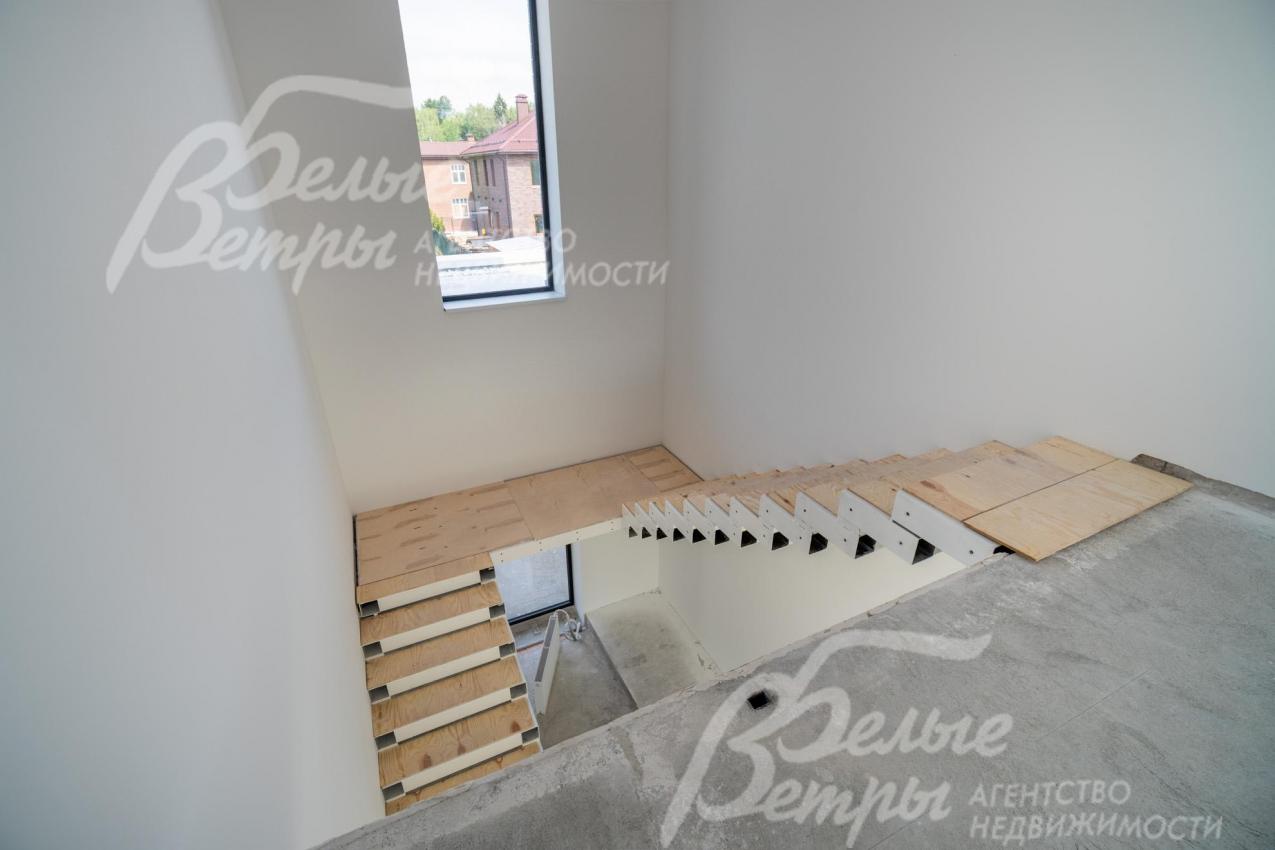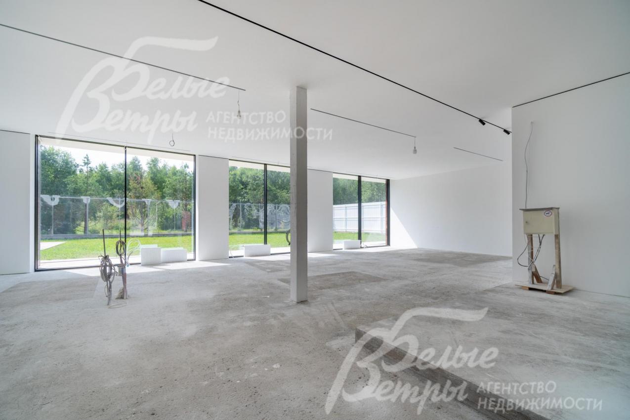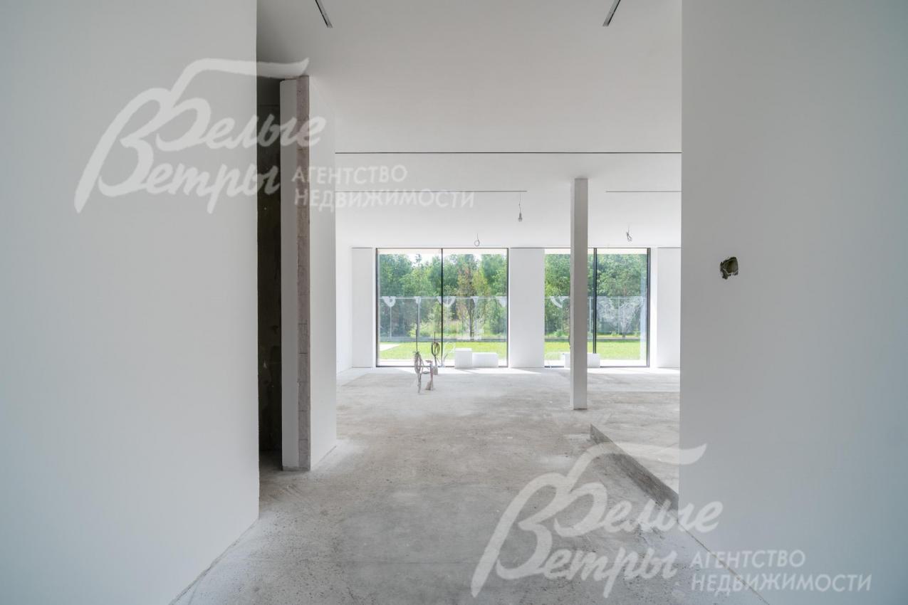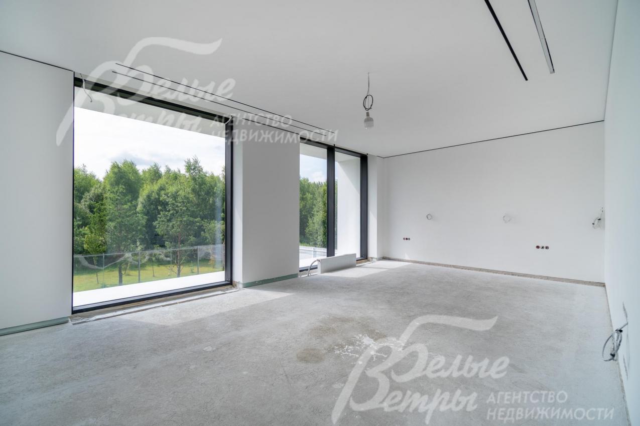 Описание внутренней отделки: дом готов к финишной отделке (White Box): стены возведены, оштукатурены и прошпаклеваны, установлена система централизованной вентиляции с кондиционированием. Есть биокамин. На второй этаж ведёт лестница из стали, запланировано стеклянное ограждение (сделаны закладные). Санузлы оснащены инсталляционными системами и смесителями, в том числе скрытыми душевыми системами. Предусмотрены двери до потолка