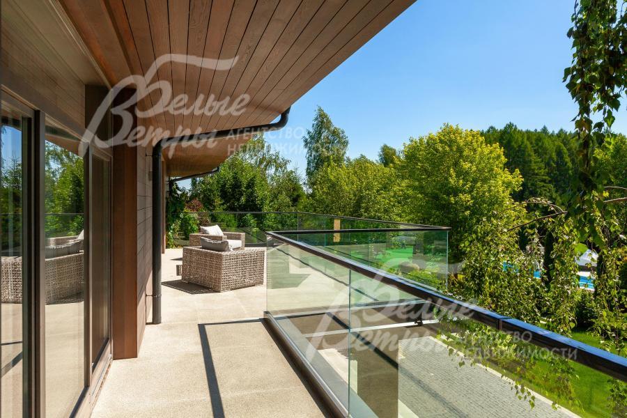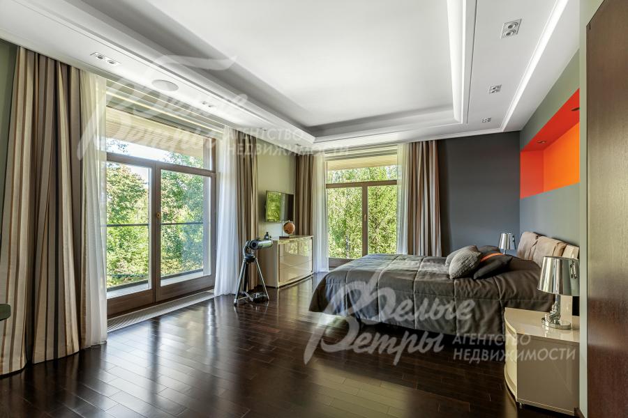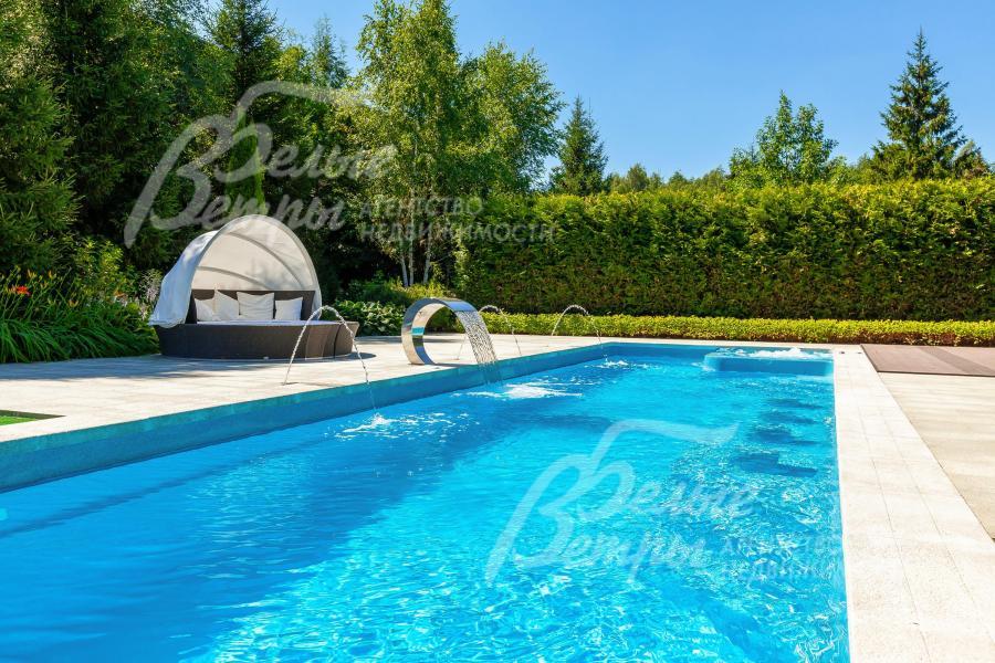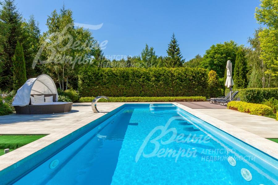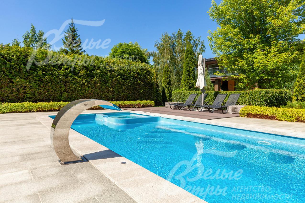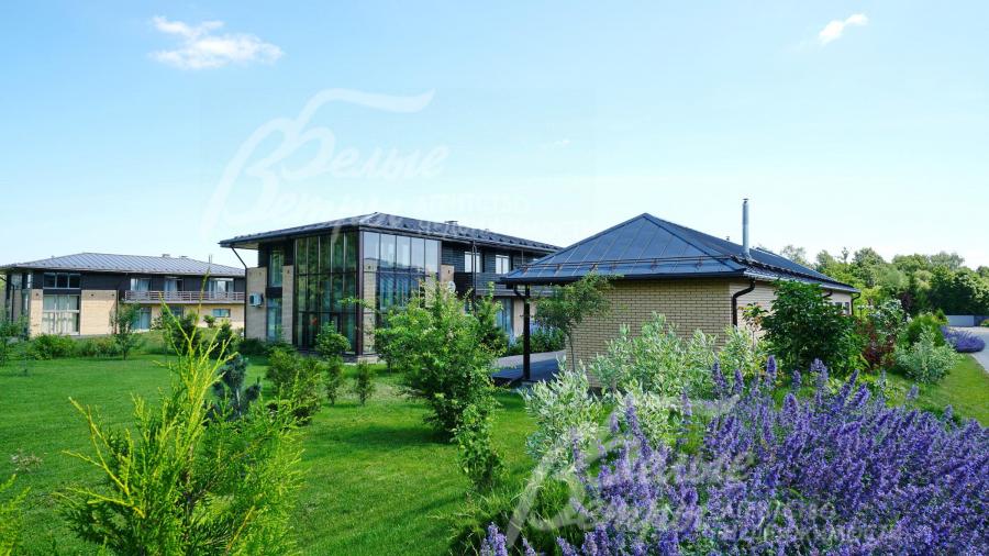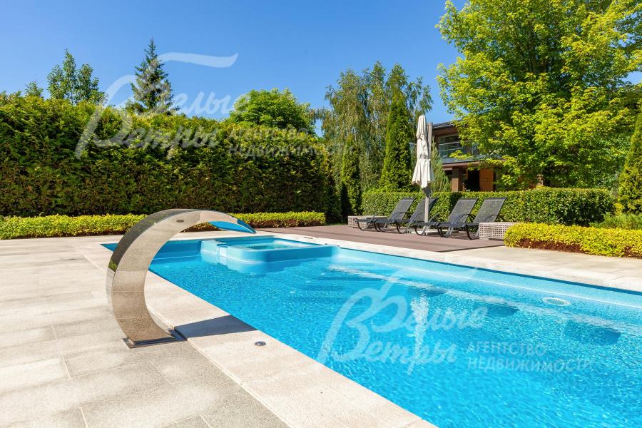 Премиальный коттедж под ключ в стиле Ф. Ллойда Райта с большим открытым бассейном в престижном эко-поселке Варварино. Главной изюминкой является большая площадь остекления и прямые формы в архитектуре дома. Выполнена красивая облицовка фасада кирпичом и деревянными панелями из лиственницы. Дом полностью обставлен дизайнерской мебелью, установлена техника ведущих производителей. Отлично продуманная планировка: 4 спальни со своими санузлами и гардеробными, одна из которых на 1-м этаже, в цоколе есть СПА-зона с сауной и джакузи, винотека, бар и кинотеатр. К основному дому пристроен блок для персонала с 2 спальнями. На участке выполнен первоклассный ландшафтный дизайн со множеством декоративных деревьев и кустарников. Камерный элитный поселок с собственным клубным домом и фитнес комплексом, где есть 2 бассейна, сауна, бильярдная, тренажерный зал. По границе поселка протекает р.Пахра. Поселок окружен лесным массивом. В поселке обустроены детские и спортивные площадки (теннисный корт, футбольное поле) тюбинговая трасса, лыжная трасса и многое другое. Недалеко частная школа НИКА. ИЖС. Московская прописка.