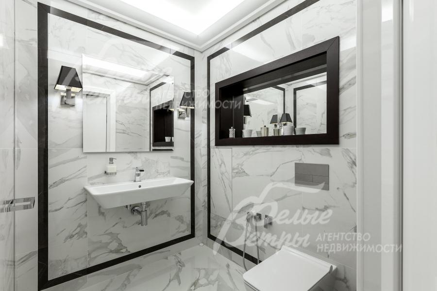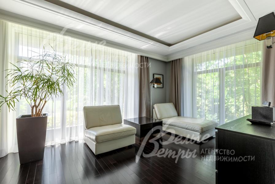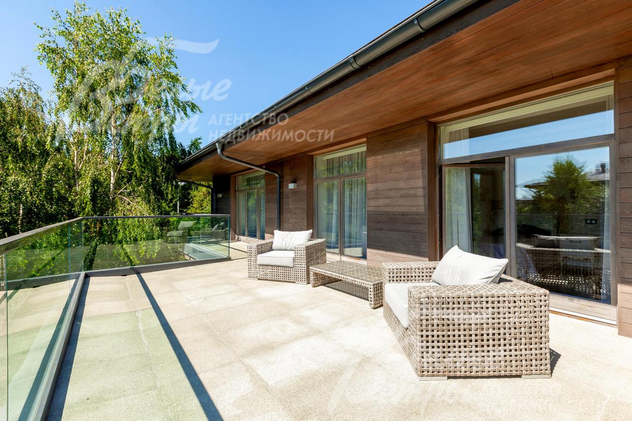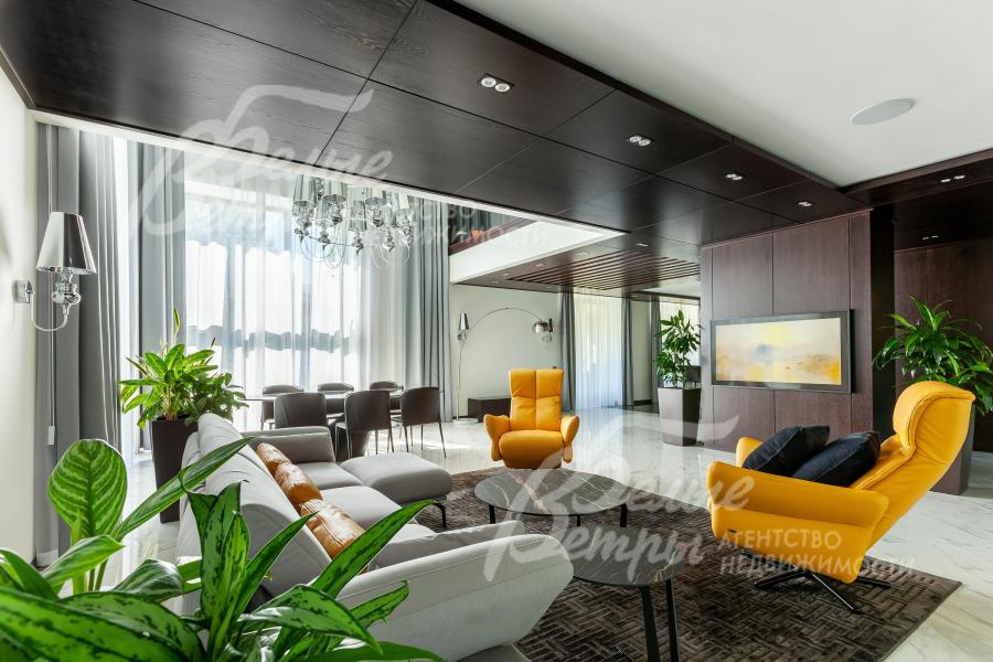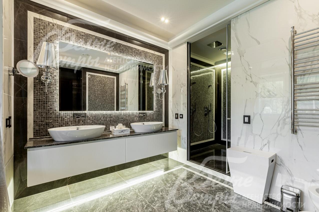 Мебель, оборудование: дом полностью укомплектован стильной дизайнерской мебелью. Современный кухонный гарнитур белого цвета с глянцевыми фасадами со встроенной техникой Miele - духовой шкаф, варочная поверхность, посудомоечная машина, вытяжка, холодильник. Акустическая система Bowers&Wilkins. Везде дизайнерские люстры, светильники, шторы.