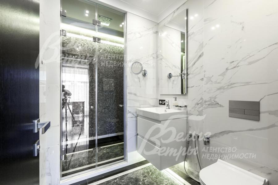 Описание внутренней отделки: выполнена премиальная дизайнерская отделка. Второй свет, во всех помещениях панорамное остекление. Встроенные шкафы. Оборудована гардеробная. Установлена сантехника бренда Catalano. Все коммуникации разведены по дому под ключ. Теплые полы на 1-м этаже, в цоколе и в санузлах.
