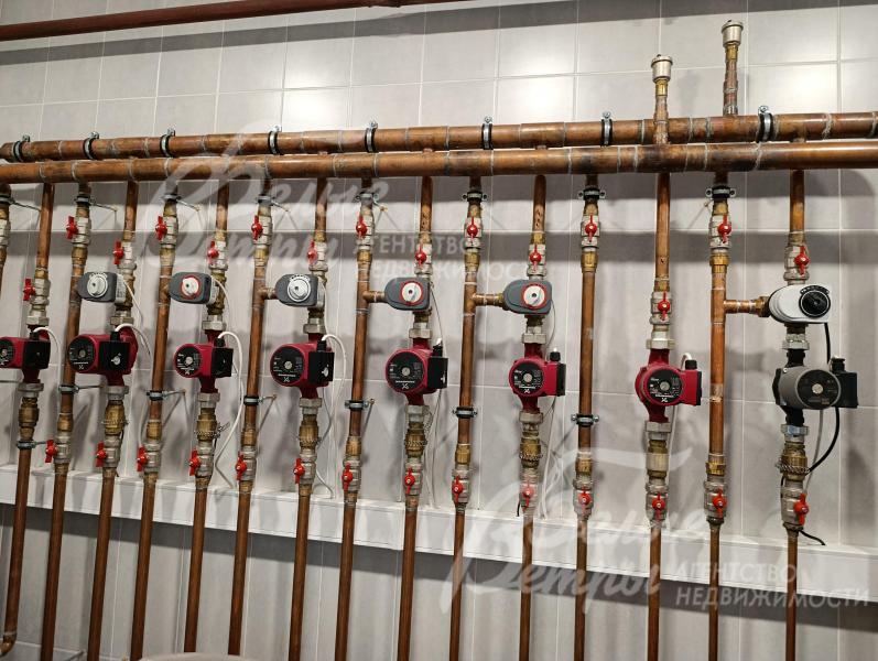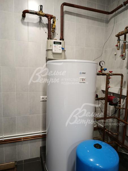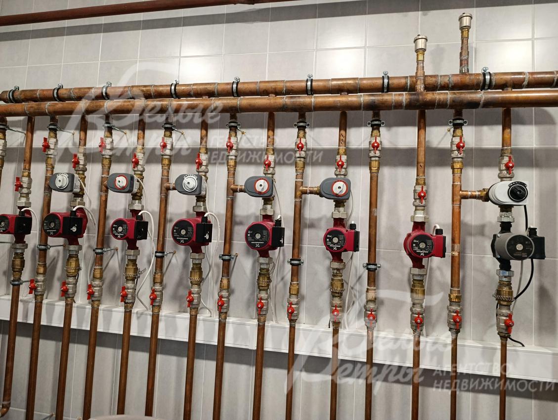Инженерное обеспечение: все инженерные коммуникации разведены по дому и функционируют. Отопление – через немецкий газовый котёл Buderus мощностью 73 кВт. Горячее водоснабжение обеспечивается бойлером объёмом 300 л. В системе установлены насосные группы Grundfos и итальянский насос для скважины. Разводка труб в котельной и по всему дому выполнена из меди
