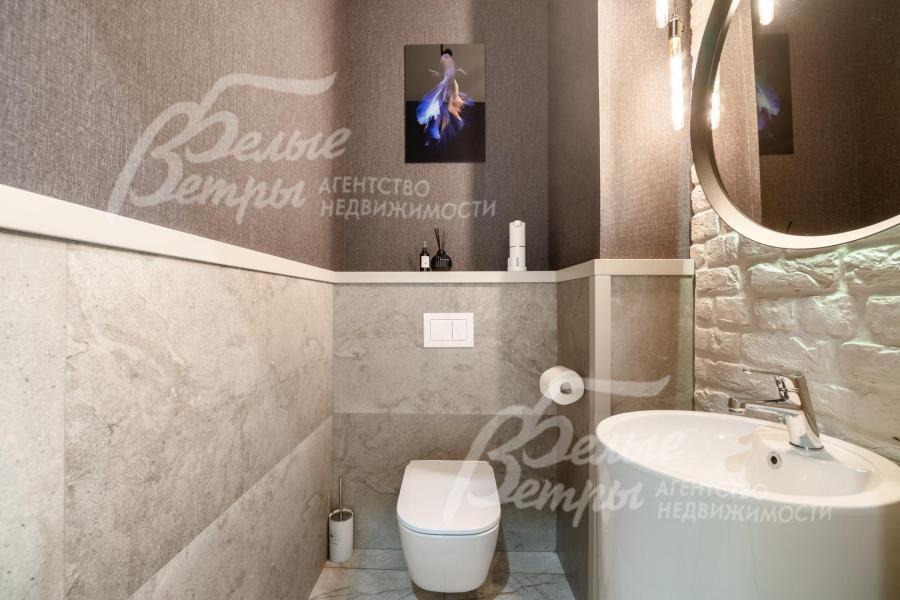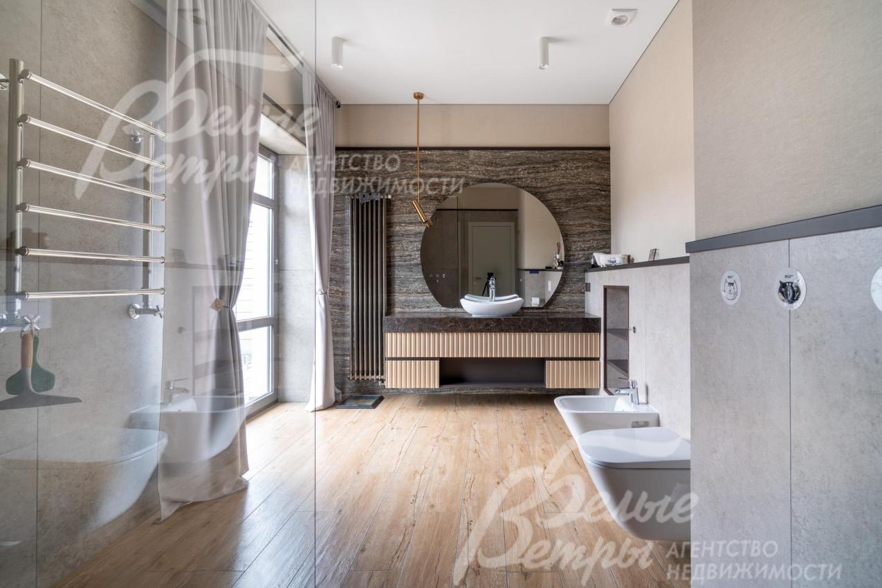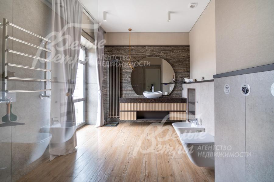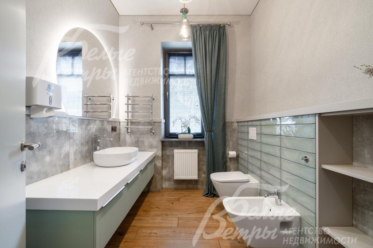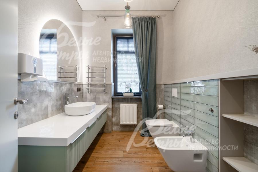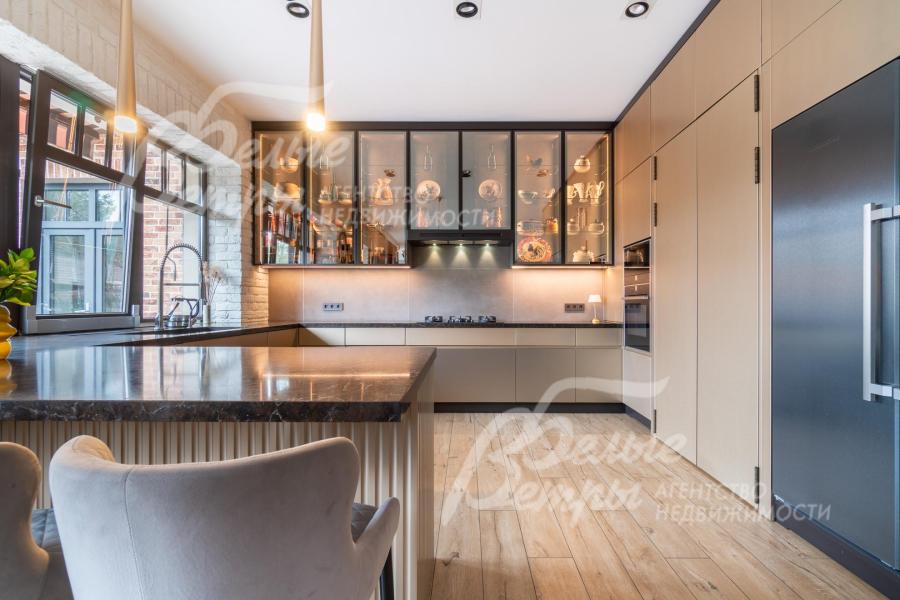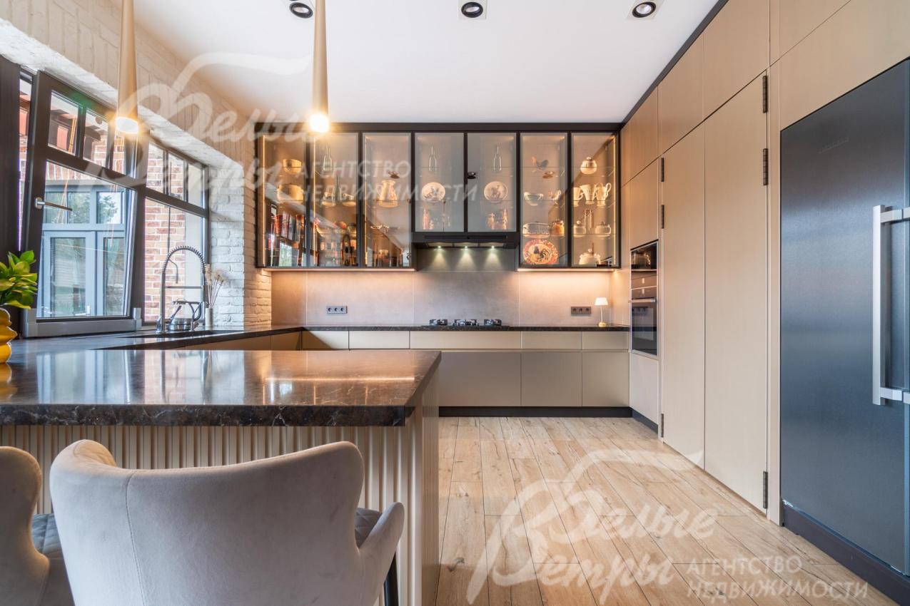 Мебель, оборудование: дом полностью меблирован. На кухне установлен премиальный гарнитур «Джулия Новарс», бытовая техника брендов Neff, Bosch и Asko, а также 5‑конфорочная плита от старейшей итальянской компании Bertazzoni. Встроены холодильник и морозильник Liebherr, столешница выполнена из кварцита. В санузлах – сантехника со смесителями Grohe и Axor