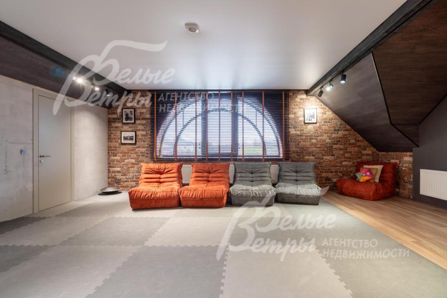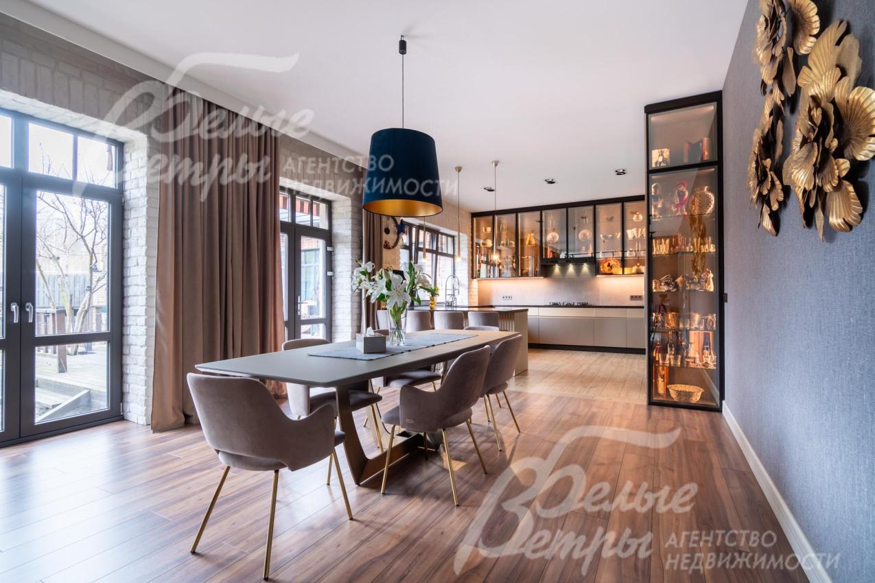 Премиальный кирпичный дом в стиле английского классического шале, полностью меблированный, расположен в клубном элитном посёлке «ВауТутинки». Выразительная архитектура с арочными и панорамными окнам, облицовкой эксклюзивным кирпичом сочетается с комфортной планировкой. В доме – спа-зона с хамамом и комнатой отдыха, эффектная гостиная с эркером, оформленным окнами от пола до потолка, функциональный мансардный этаж, 2 биокамина. Мастер-блок включает салон с ванной. Отделка выполнена из дорогостоящих материалов. Дом стоит на зелёном участке с живописным ландшафтным дизайном, отапливаемой беседкой и хозяйственными постройками в строго охраняемом коттеджном посёлке с центральными коммуникациями в 100 м от реликтового леса и рядом с благоустроенным прудом.
