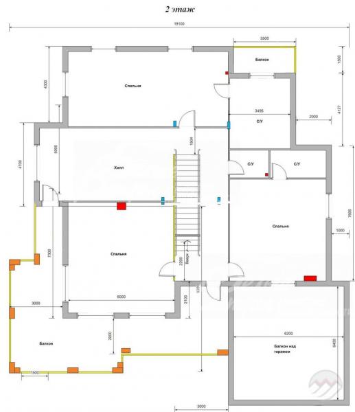 2-ой этаж: холл 35.6 кв.м, спальная 32 кв.м с с/узлом 14 кв.м и балконом 5.3 кв.м, спальня 24 кв.м с с/узлом 5 кв.м, спальня 36 кв.м, с/узел 6 кв.м, терраса 90 кв.м с летним/зимним садом на кровле