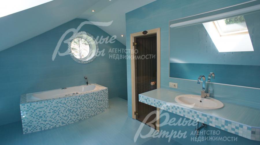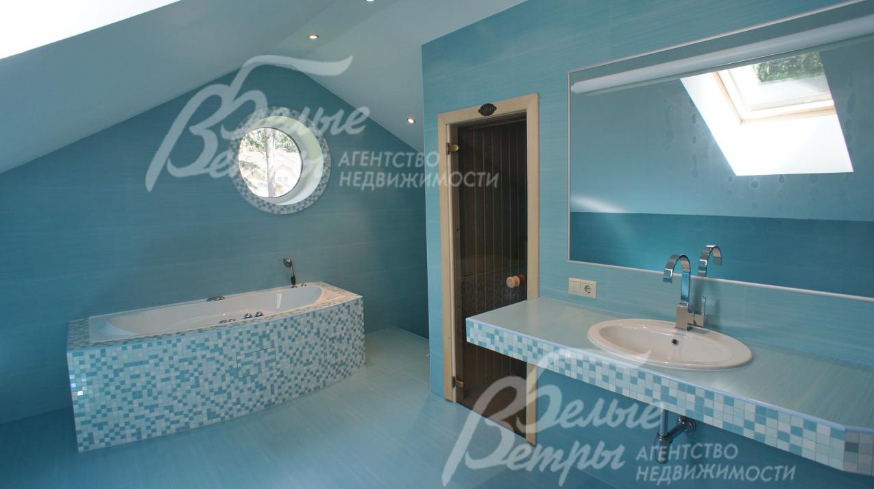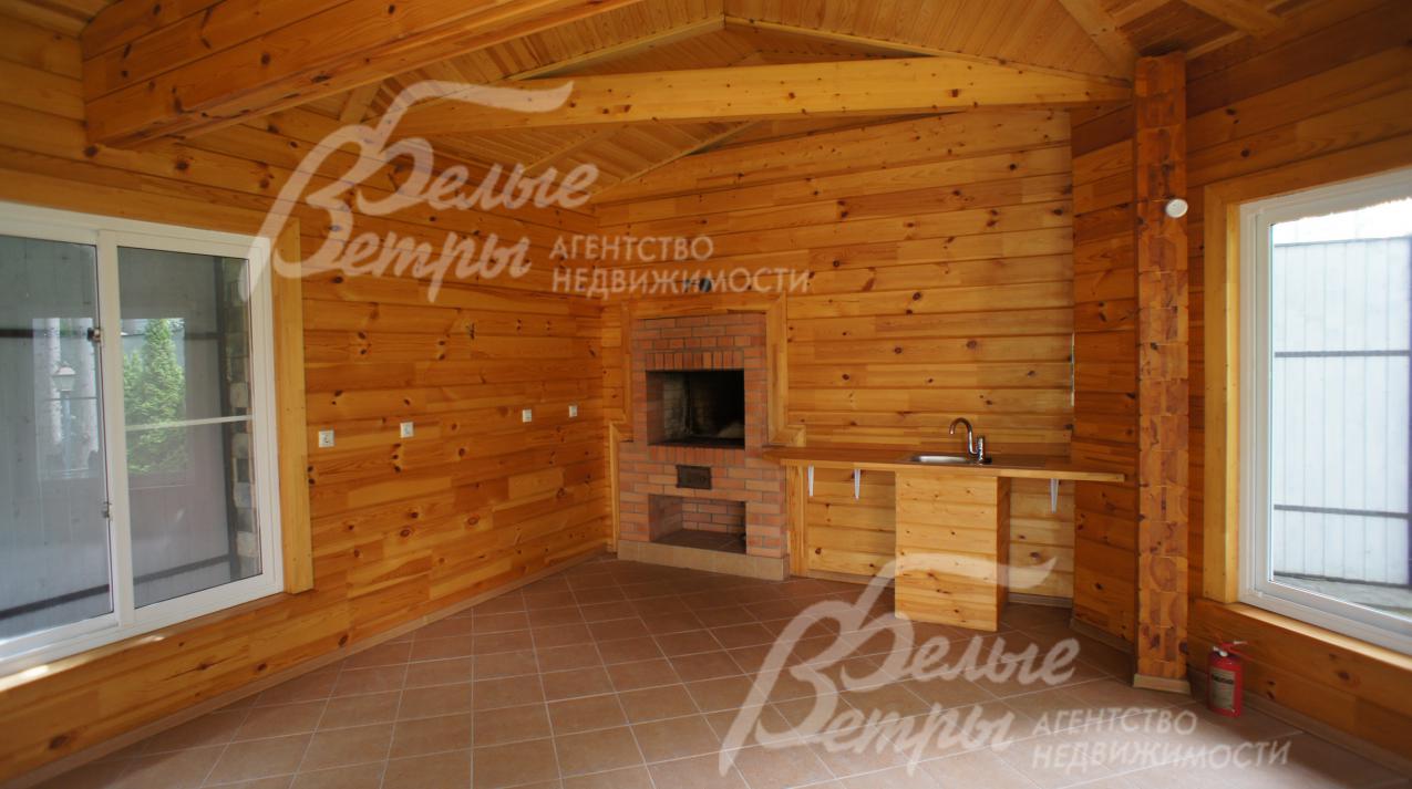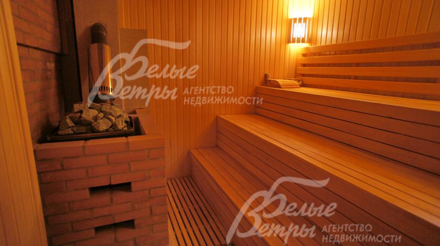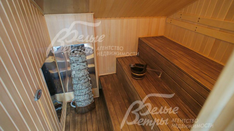 Дополнительные строения: Гостевой дом с русской баней из клеёного бруса 60 кв.м (комната отдыха 23.5 кв.м, с/у 3 м, раздевалка 6.8 кв.м, душевая с банной кадкой для обливания, купель, большая парная 83 кв.м (3 полки) - финская печь Kastor, беседка из клееного бруса 25 кв. м крытая застекленная, с кирпичной печью барбекю, с водопроводом и канализацией. Навес для 2 а/м, с помещением для хранения вещей