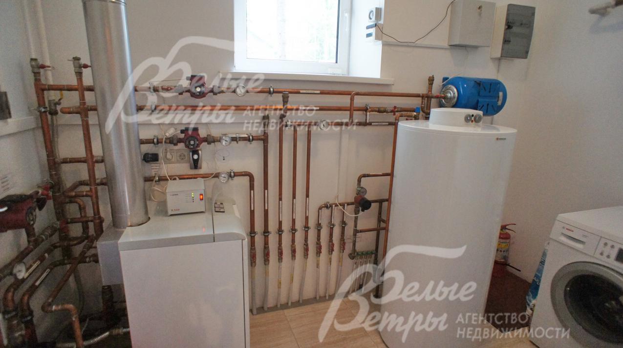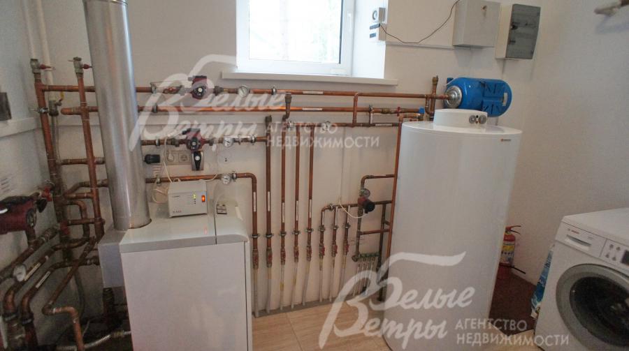 Инженерное обеспечение: Газовый котел Proterm 40 кВт, бойлер 210 литров Drazice (пр-во Чехия), многоступенчатая система очистки воды, кондиционеры, сигнализация, стабилизатор напряжения, радиаторы стальные панельные, конвекторы в полу в гостиной, разетки Legrand, видеодомофон на каждом этаже