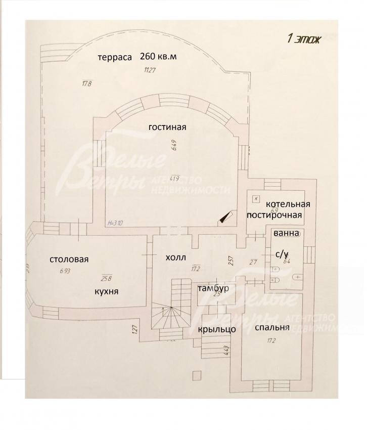 Дополнительная информация о доме: фундамент- монолит, межэтажные перекрытия железобетонные, высота потолков в помещениях на 1-м этаже 3 м, на 2-м этаже 2.9 м