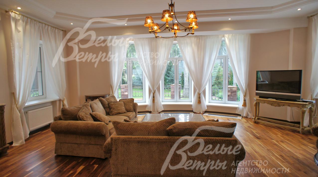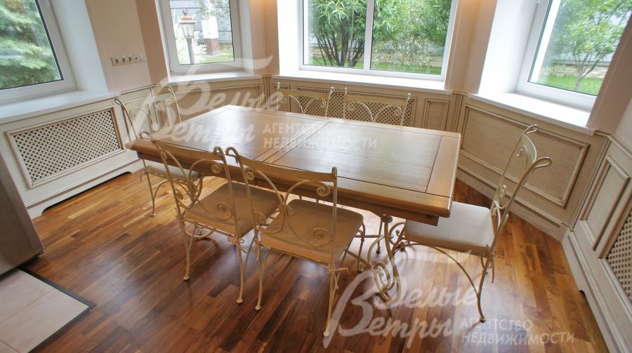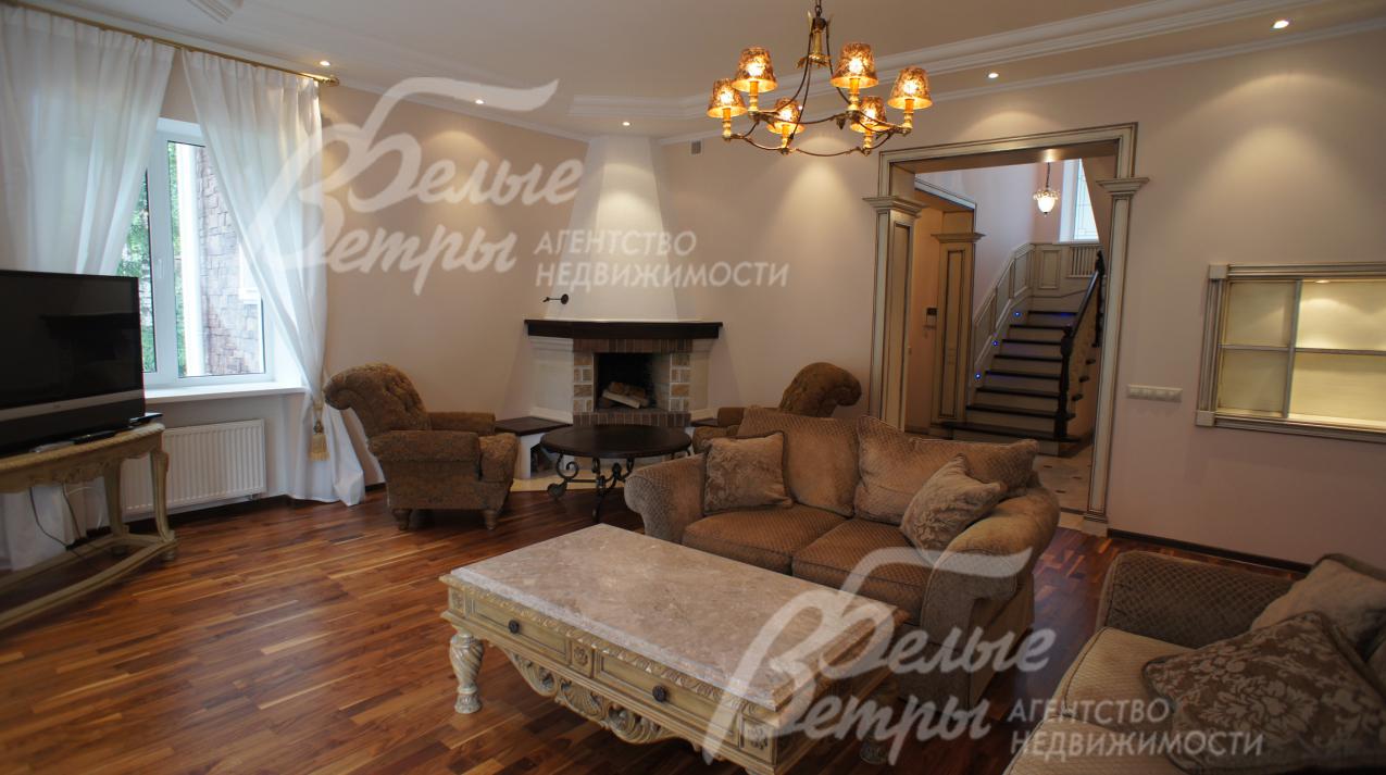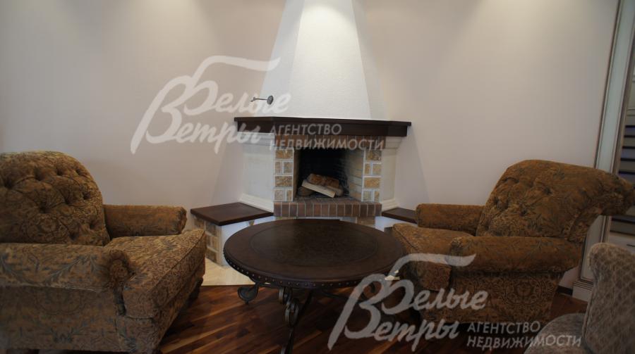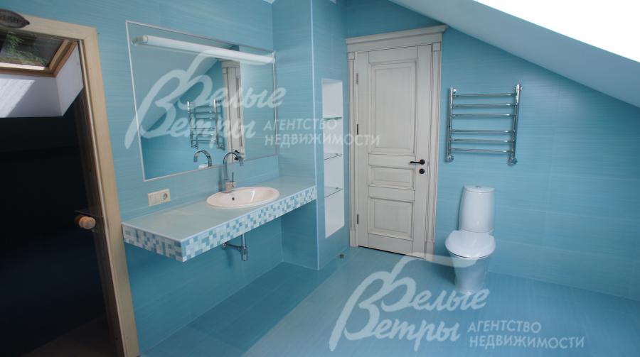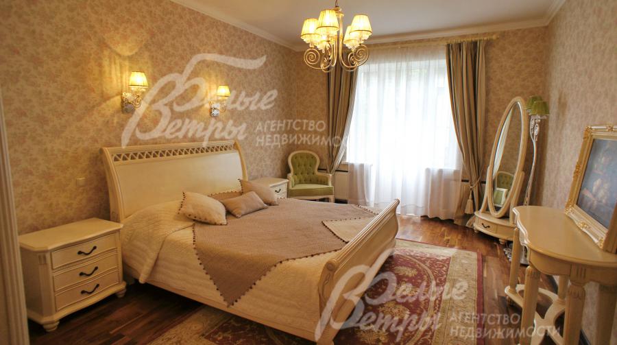Описание внутренней отделки: Классический стиль с мотивами Прованса. Качественная отделка с использованием дорогостоящих материалов. Стены в нежилых помещениях окрашены, в спальнях английские бумажные обои. Полы- керамогранит с водяным подогревом, паркетная доска. Лестничный марш- металлический каркас, отделка из дуба, с подсветкой (ширина 100, ступени 33 *19 см). Потолки окрашены, в гостиной многоуровневый ГКЛ. Двери из массива лиственницы, с порталами, в классическом стиле.