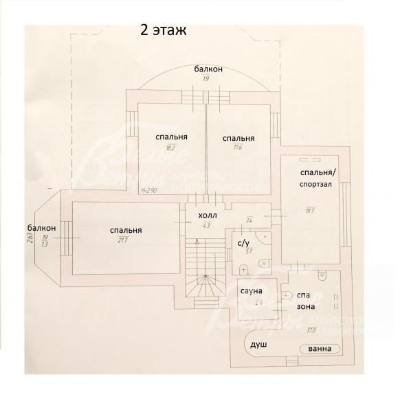 2-ой этаж: хозяйская спальня, 20 кв.м, ванная комната 18 кв.м, спальня 18 кв.м, спальня 17.6 кв.м, спортивный зал 22 кв.м, с/у с сауной, с/у 5 кв. м, сауна 5 кв.м,