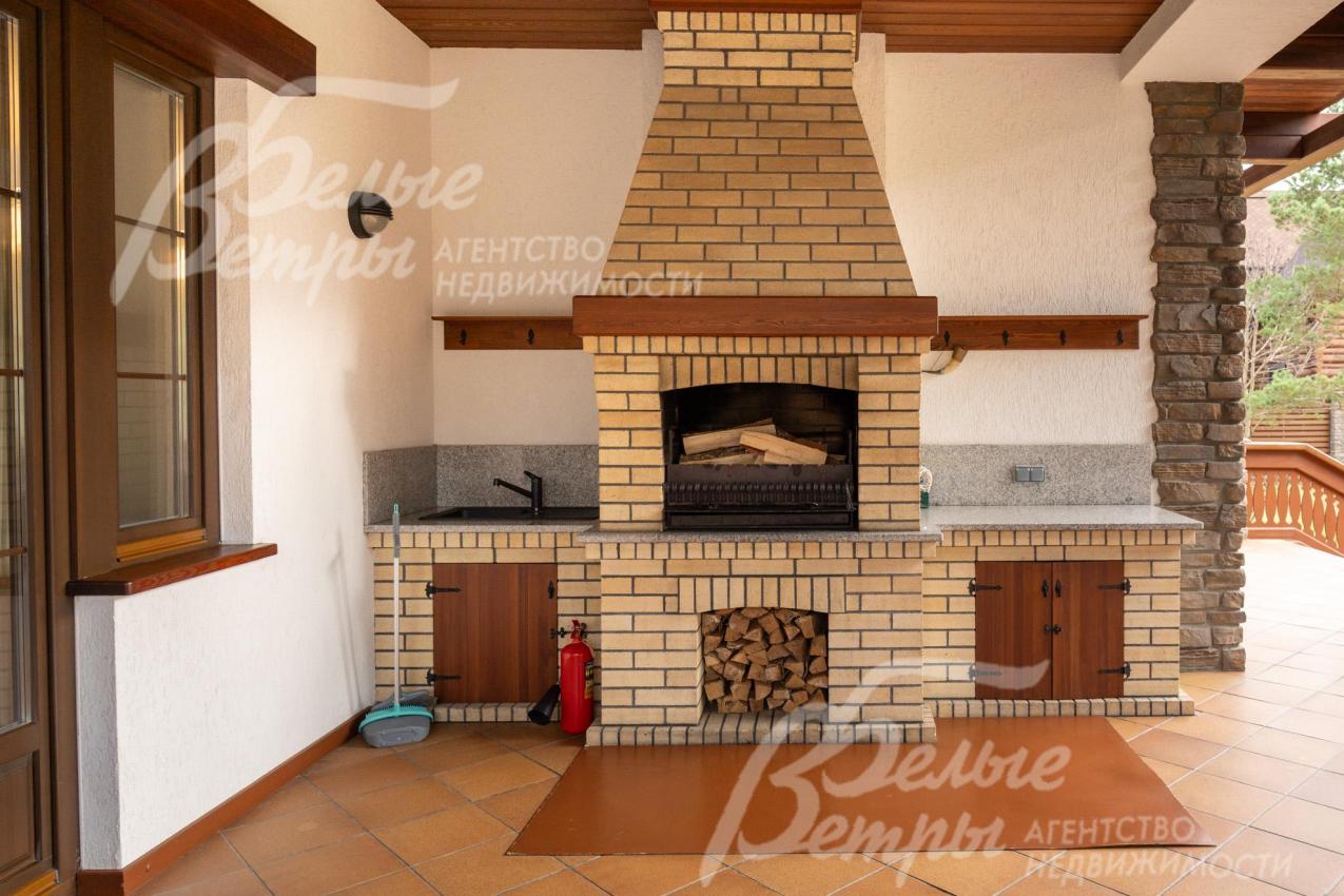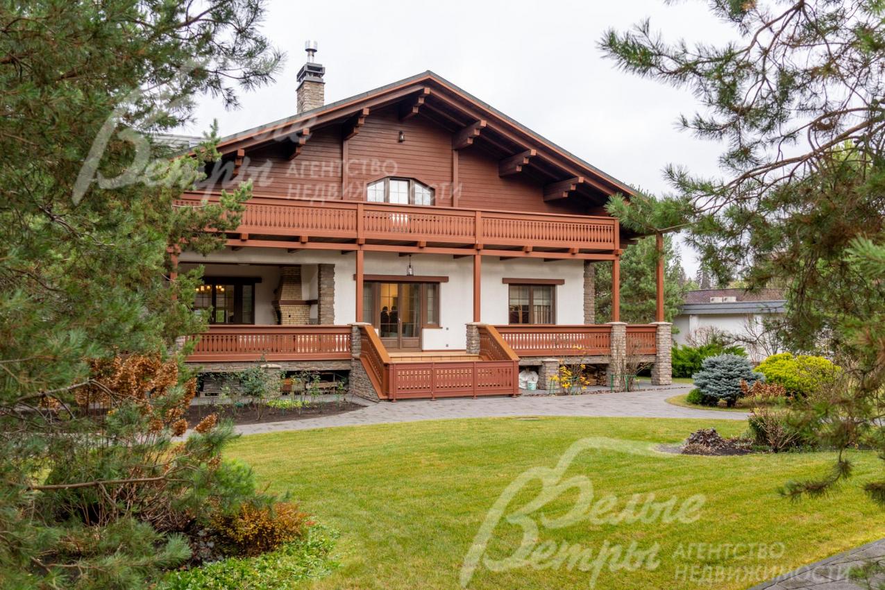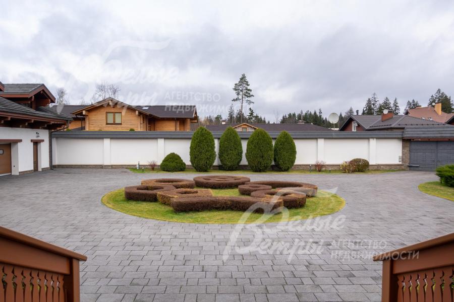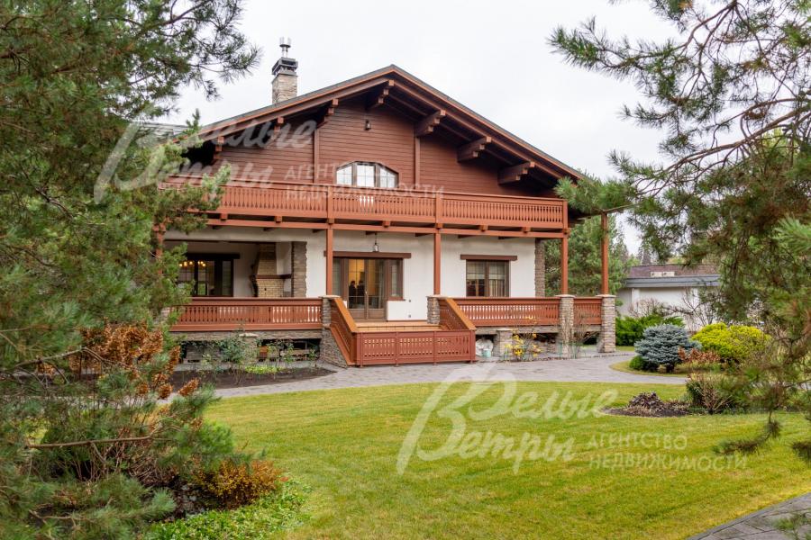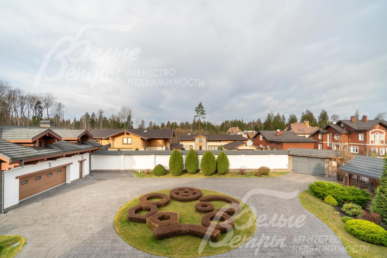 Премиальный меблированный дом в идеальном состоянии в престижном охраняемом коттеджном посёлке. Стены из кирпича, выразительная архитектура и отделка фасада в стиле шале: 1-ый этаж - камень, штукатурка, 2ой этаж - отделан лиственницей экстра-класса. Большие крытые террасы и лоджии. Дорогая композитная кровля с большими свесами, множество мощных деревянных балок и консолей. Деревянные стеклопакеты. В планировке - большие комнаты, есть SPA-зона, поражающий красотой камин. Внутренняя отделка "под тапочки", в современной стилистике, элитными материалами и с превосходным качеством. Мебель, сантехника, освещение от премиальных брендов. Мощная инженерия - немецкое котельное оборудование, системы бесперебойного энерго-обеспечения, видеонаблюдения, сигнализации, усиления сотовой связи и бесшовного интернета по всему участку. Роскошный и очень ухоженный участок, с парадной клумбой, вместительным паркингом, множеством взрослых деревьев, идеальным газоном; продуманный ландшафт оставляет простор и впечатляющие обзорные виды. Кроме основного есть также вспомогательный дом в стиле основного дома - с большим гаражом, гостевым блоком, и квартирой персонала.