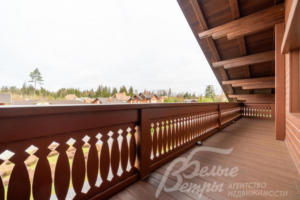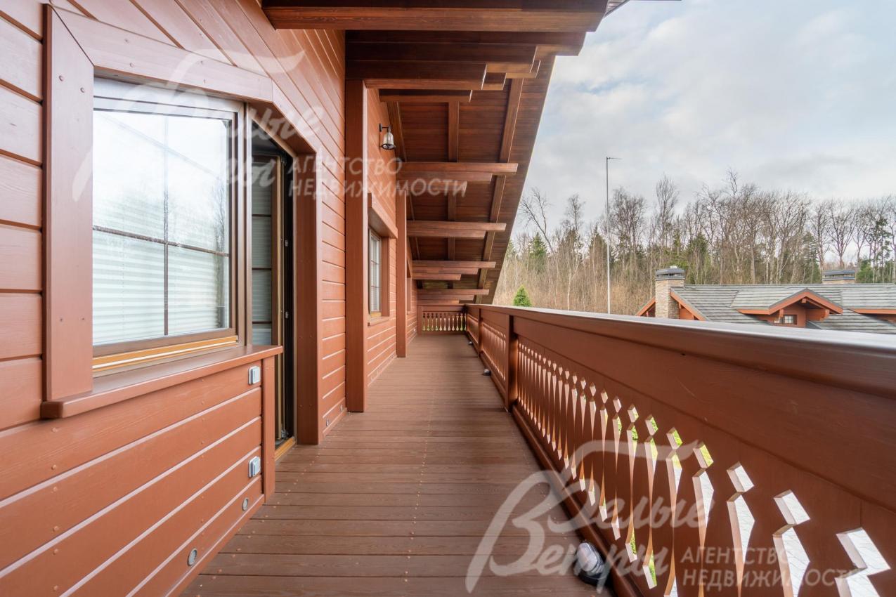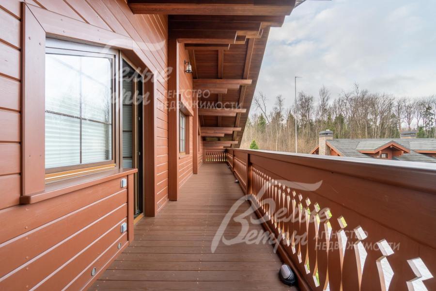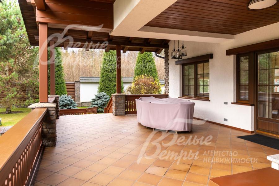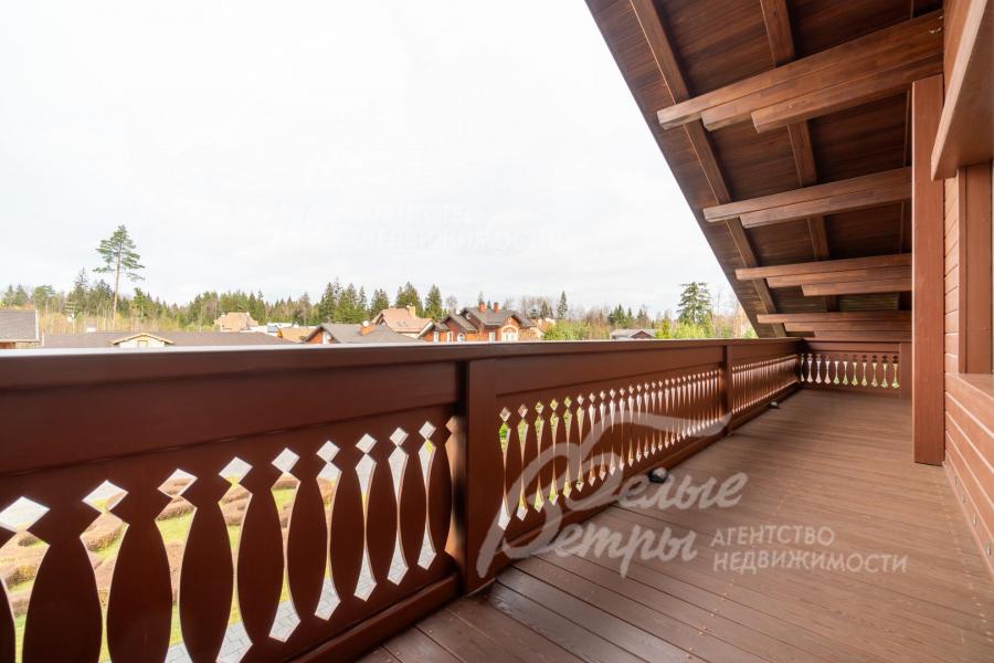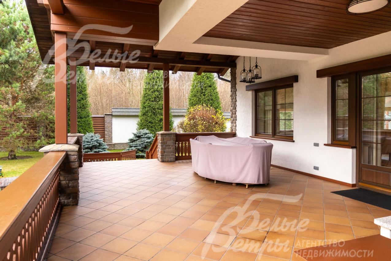 Премиальный меблированный дом в идеальном состоянии в престижном охраняемом коттеджном посёлке. Стены из кирпича, выразительная архитектура и отделка фасада в стиле шале: 1-ый этаж - камень, штукатурка, 2ой этаж - отделан лиственницей экстра-класса. Большие крытые террасы и лоджии. Дорогая композитная кровля с большими свесами, множество мощных деревянных балок и консолей. Деревянные стеклопакеты. В планировке - большие комнаты, есть SPA-зона, поражающий красотой камин. Внутренняя отделка "под тапочки", в современной стилистике, элитными материалами и с превосходным качеством. Мебель, сантехника, освещение от премиальных брендов. Мощная инженерия - немецкое котельное оборудование, системы бесперебойного энерго-обеспечения, видеонаблюдения, сигнализации, усиления сотовой связи и бесшовного интернета по всему участку. Роскошный и очень ухоженный участок, с парадной клумбой, вместительным паркингом, множеством взрослых деревьев, идеальным газоном; продуманный ландшафт оставляет простор и впечатляющие обзорные виды. Кроме основного есть также вспомогательный дом в стиле основного дома - с большим гаражом, гостевым блоком, и квартирой персонала.