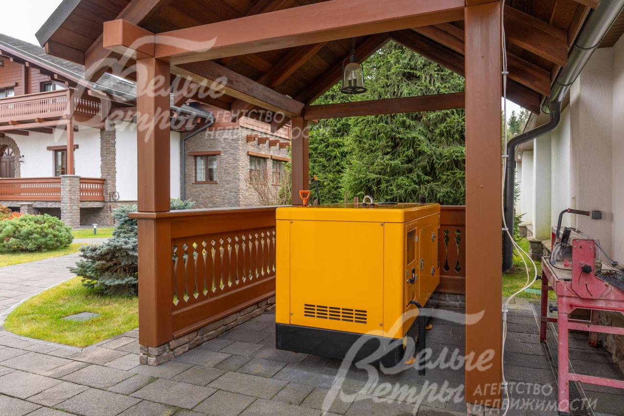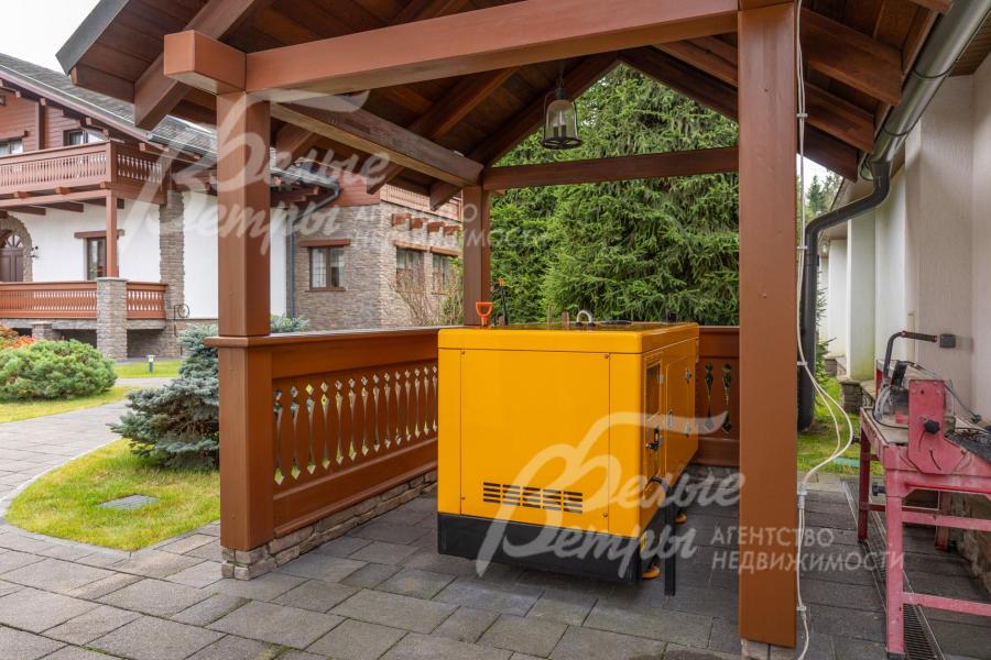 Инженерное обеспечение: отопление – через 2 котла Viessmann по 60 кВт с каскадным подключением и умными "головами". Горячее водоснабжение – через бойлер Viessmann на 500 л (с запасом, позволяющим обслуживать бассейн). Многоступенчатая система водоподготовки с умягчением (Rain Soft, США). Во всех спальнях – сплит-системы кондиционирования DAIKIN, на цокольном этаже - принудительная приточная вентиляция Breezart Аква 1000. Система бесперебойного энергообеспечения: в случае отключения электроэнергии источник бесперебойного питания (ИБП) Effekta (Германия) перехватывает на себя управлениям важными приборами (головы котлов, сотовая связь, открытие въездных ворот и калитки, щитовые, слаботочка (интернет/тв), видео-наблюдение и сигнализация, система против протечек Нептун), не позволяя им отключиться даже на короткое время, и далее, в течение до 30 сек управление энергообеспечением уже всем объектом автоматически передается резервному дизельному генератору JCB, 33 кВт, топливного бака которого хватит на 10-12 часов. Комплексная система безопасности интегрирована с пультом вневедомственной охраны и включает периметральную сигнализацию Paradox (от перелаза), датчики движения и открытия в доме. Система защиты от протечек «Нептун». Мощная система усилителя сотовой связи включает мачту с приемной антенной, в каждом строении по бустеру (усилителю сигнала), которые передают сигнал на множество антенн внутри дома в разных помещениях. Также реализована система бесшовного интернета по всему участку и дому.
