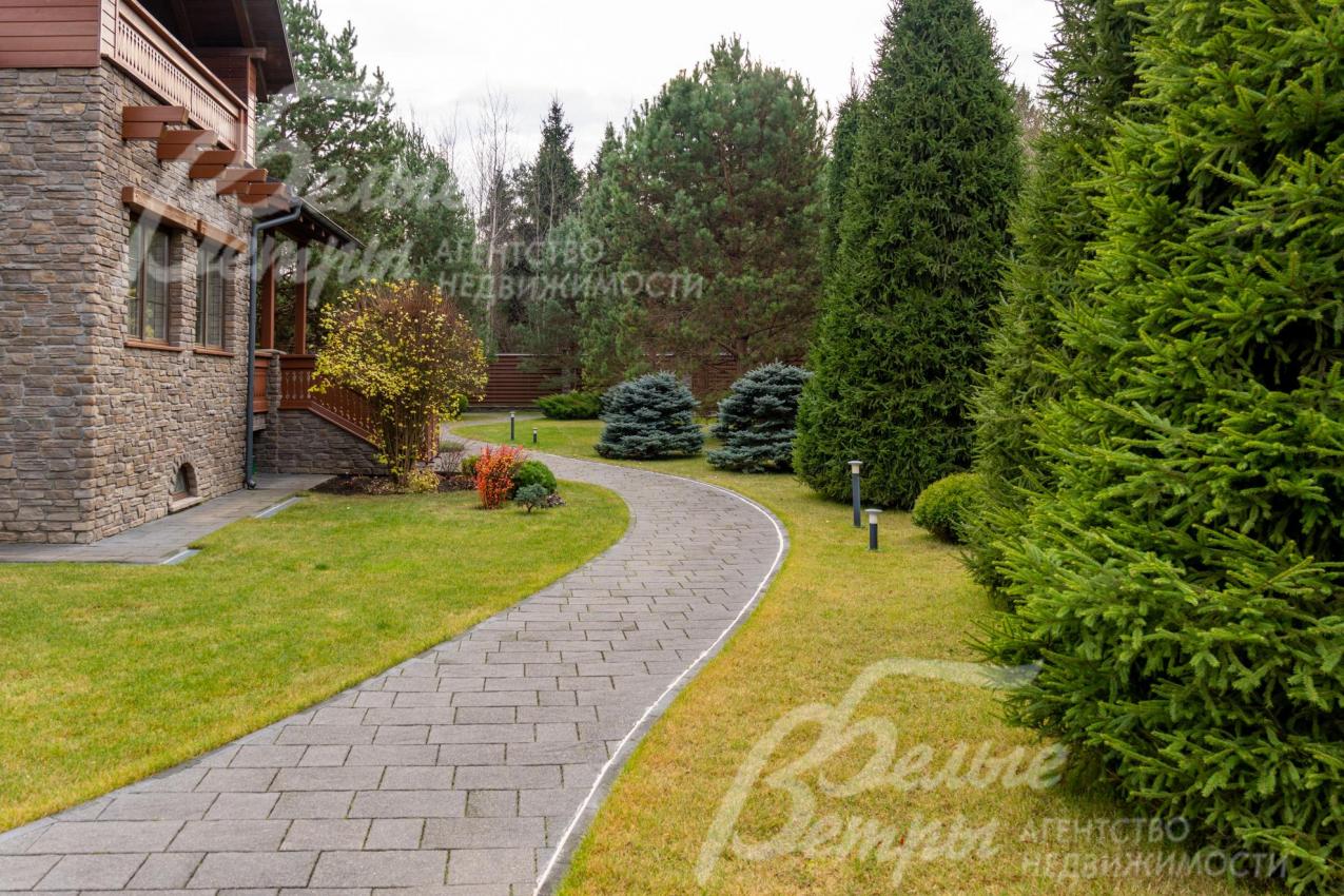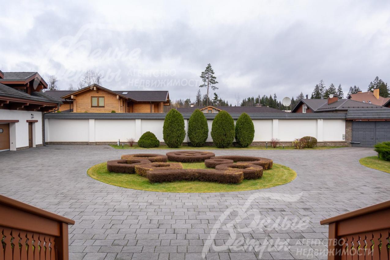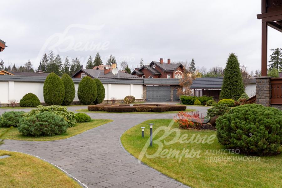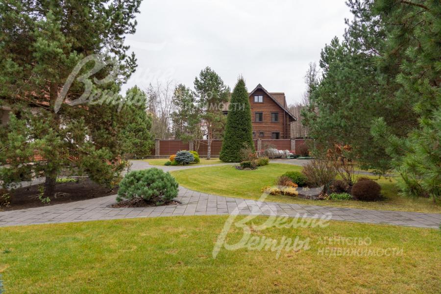 Благоустройство участка: роскошно оформленный и очень ухоженный участок: около 80 высаженных взрослых деревьев и кустарников, в том числе 15 сосен высотой по 8 м, 8 елей (сформированы кроны), 6 голубых елей, корейская кедровая сосна, орешник, можжевельники, декоративные хвойные и другие. Ландшафтный дизайн дополнен идеальным газоном «4 мятлика», цветниками и центральной круглой клумбой перед домом с кустами спиреи. Дорожки и площадка для парковки (на более, чем 10 автомобилей) выложены бетонной брусчаткой с гранитной крошкой, на мощном железобетонной основании (монолитная плита 25 см с двойным армированием), общая площадь мощения 1150 кв.м. Установлена система автополива Weathermatic (США), включающая 15 зон орошения: система оснащена двумя резервуарами по 1,5 тонны воды каждый, система оборудована дождевальными установками и баблерами для точечного полива крупных деревьев. Выполнено освещение, дренажная система по участку и вокруг дома.