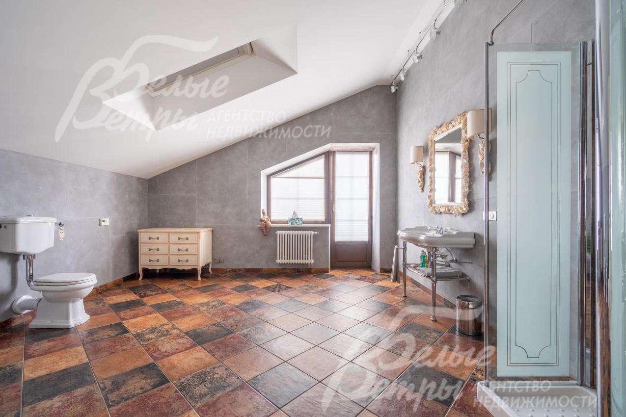 Дополнительная информация о доме: Дом строился для себя, по самым высоким стандартам качества. Идеальный функционал, все помещения большого размера. Высота потолков на 1-м этаже – 3,3 м, на 2-м этаже – в спальнях скатные потолки высотой 1,65-3,3 м, в холле – 5 м, на цокольном этаже – 2,85 м