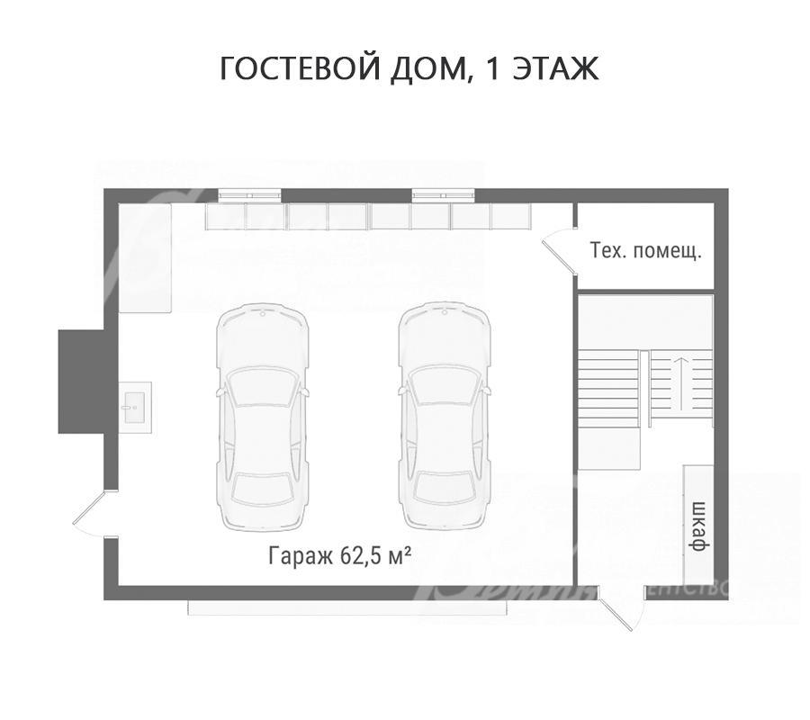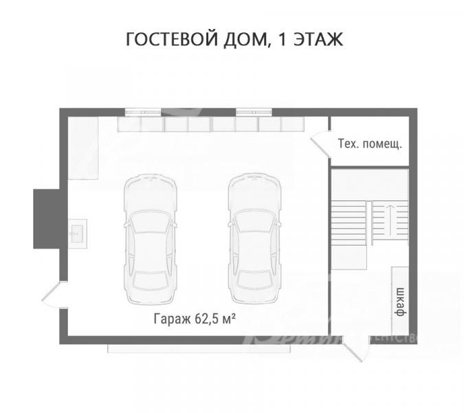 Дополнительные строения: Вспомогательный 3-этажный кирпичный дом 237 кв.м в стиле основного дома с отделкой под ключ: 1ый этаж: большой гараж 62,5 кв.м на 2 автомобиля с автоматическими воротами DoorHan (проем шириной 6,45 м), системой хранения, мастерской, технической мойкой; 2ой этаж - с отдельным входом с улицы гостевая квартира с премиальной отделкой 71 кв.м (кухня-столовая-гостиная 26 кв.м, спальня 17 кв.м, спальня 17 кв.м, гардеробная 5 кв.м, санузел 7,5 кв.м (с душем); цокольный этаж – квартира для персонала (кухня-столовая 13 кв.м, спальня 11 кв.м, спальня 7 кв.м, санузел (с душем), котельная 32,5 кв.м (на оба строения).