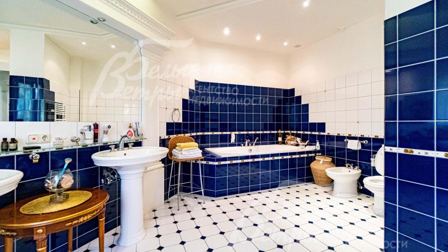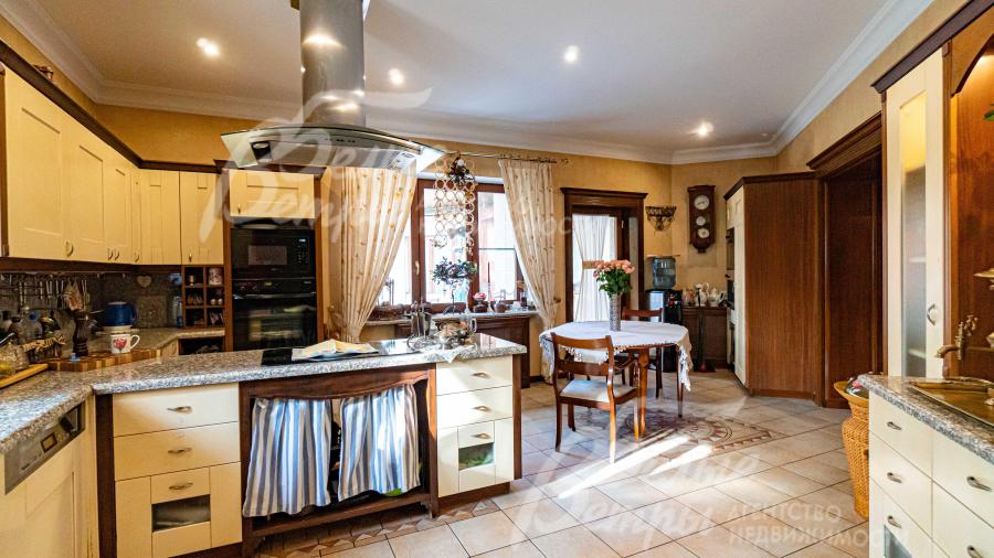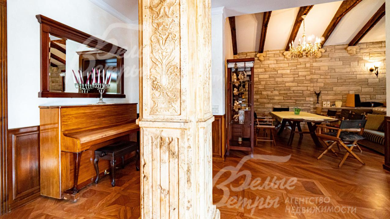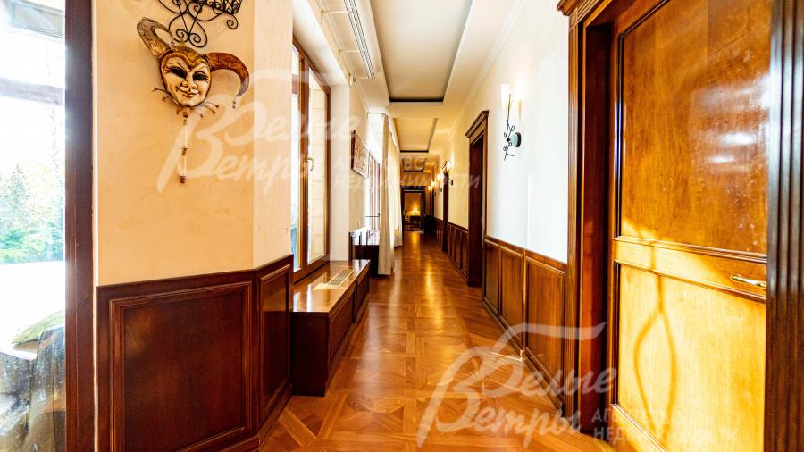 Описание внутренней отделки: в 1-ой части дома: отделка в классическом стиле от ведущих итальянских производителей; на стенах обои, венецианская штукатурка, натуральный камень; на полу штучный паркет Gazotti африканский дуб; теплые полы везде где плитка; сантехника Villeroy&Boch; двери из массива ореха (Италия), подоконники из массива, гранитные столешницы; 2 часть дома: отделка в современном стиле, с готовыми "под ключ" санузлами, электрикой, кухней; ультрасовременные двери МДФ 2.4 м высотой (Италия); подоконники из камня; стены и полы подготовлены под финишную отделку;