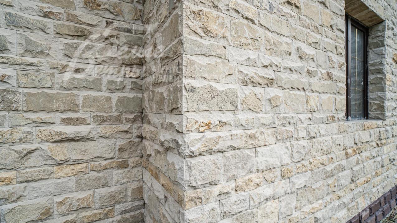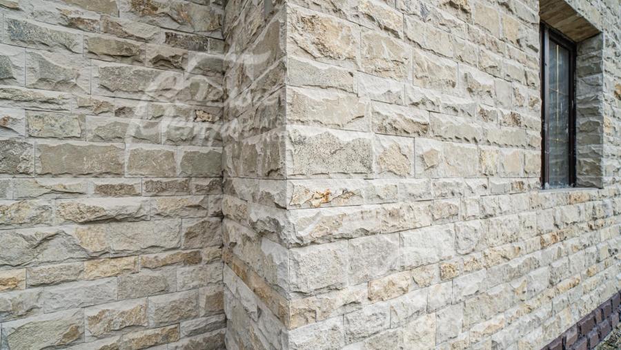 Облицовка стен: 1 этаж - камень песчаник, 2 этаж - штукатурка