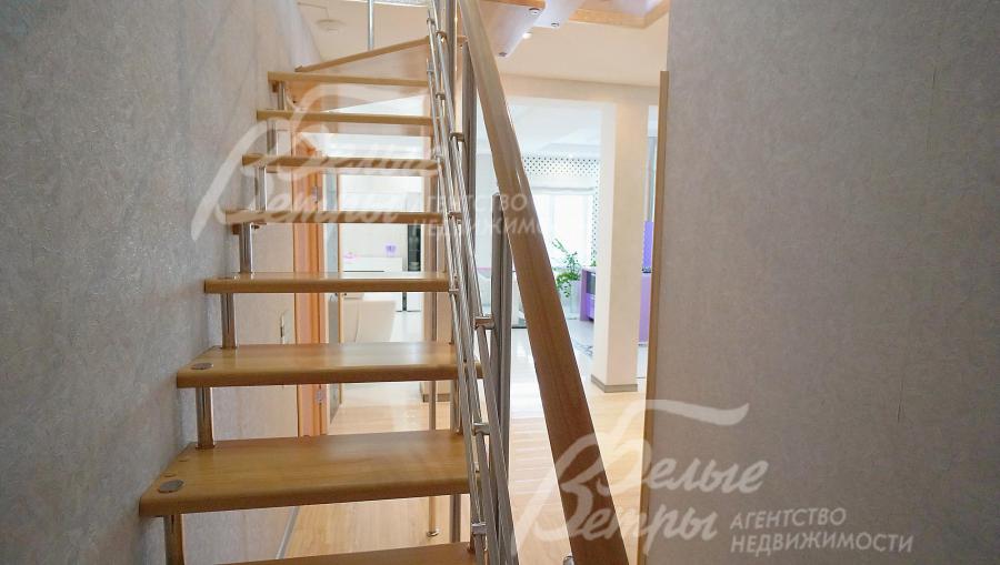 Описание внутренней отделки: В современном стиле: на 1 этаже - обои, на 2 этаже - декоративная штукатурка, в санузлах плитка, на полу - ламинат. Лестничный марш - натуральный бук с перилами из нержавеющей стали