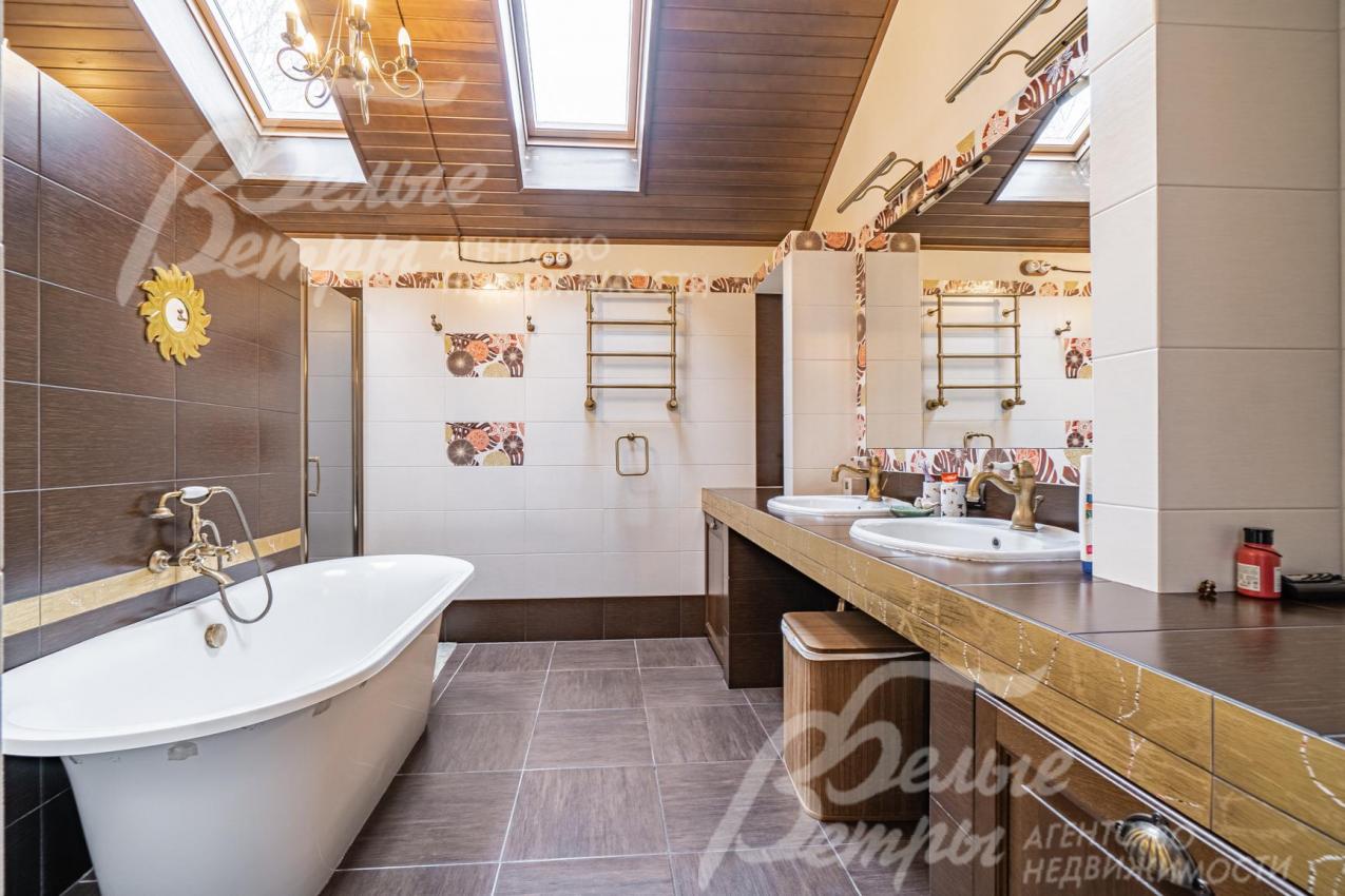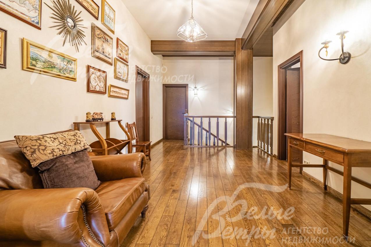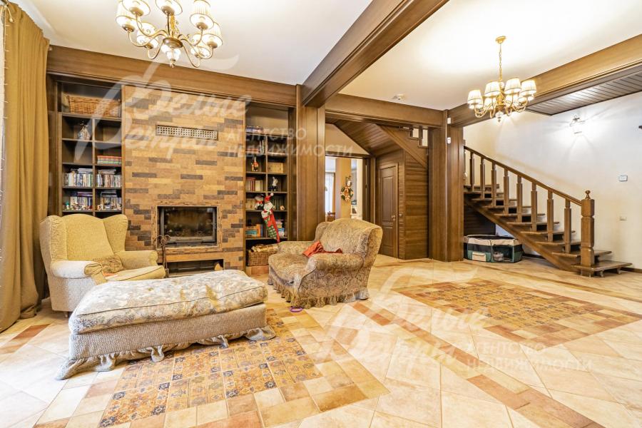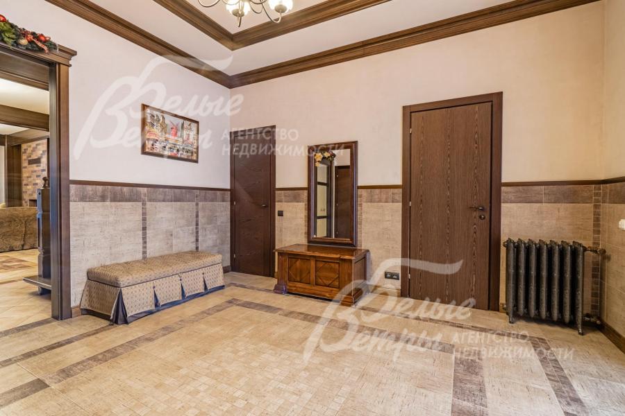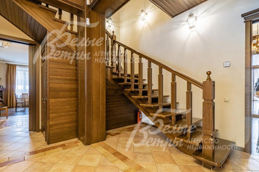 Описание внутренней отделки: отделка выполнена в классическом стиле. На стенах бумажные обои, декоративная штукатурка. Итальянская плитка на полу кухни, прихожей, гостиной и во всех санузлах. В остальных помещениях напольное покрытие из массива дуба. Широкая лестница из массива сосны. Потолки из гипсокартона, отделаны деревянными панелями. Установлена сантехника марок Jacob Delafon и Grohe. Все коммуникации разведены. Водяной тёплый пол везде, где плитка на 1-м этаже и во всех санузлах. В прихожей дизайнерские чугунные радиаторы, в остальных комнатах трубчатые радиаторы Arbonia. Розетки и выключатели Legrand. Межкомнатные двери МДФ ламинированные. Подоконники из ламинированного пластика под светлый дуб.