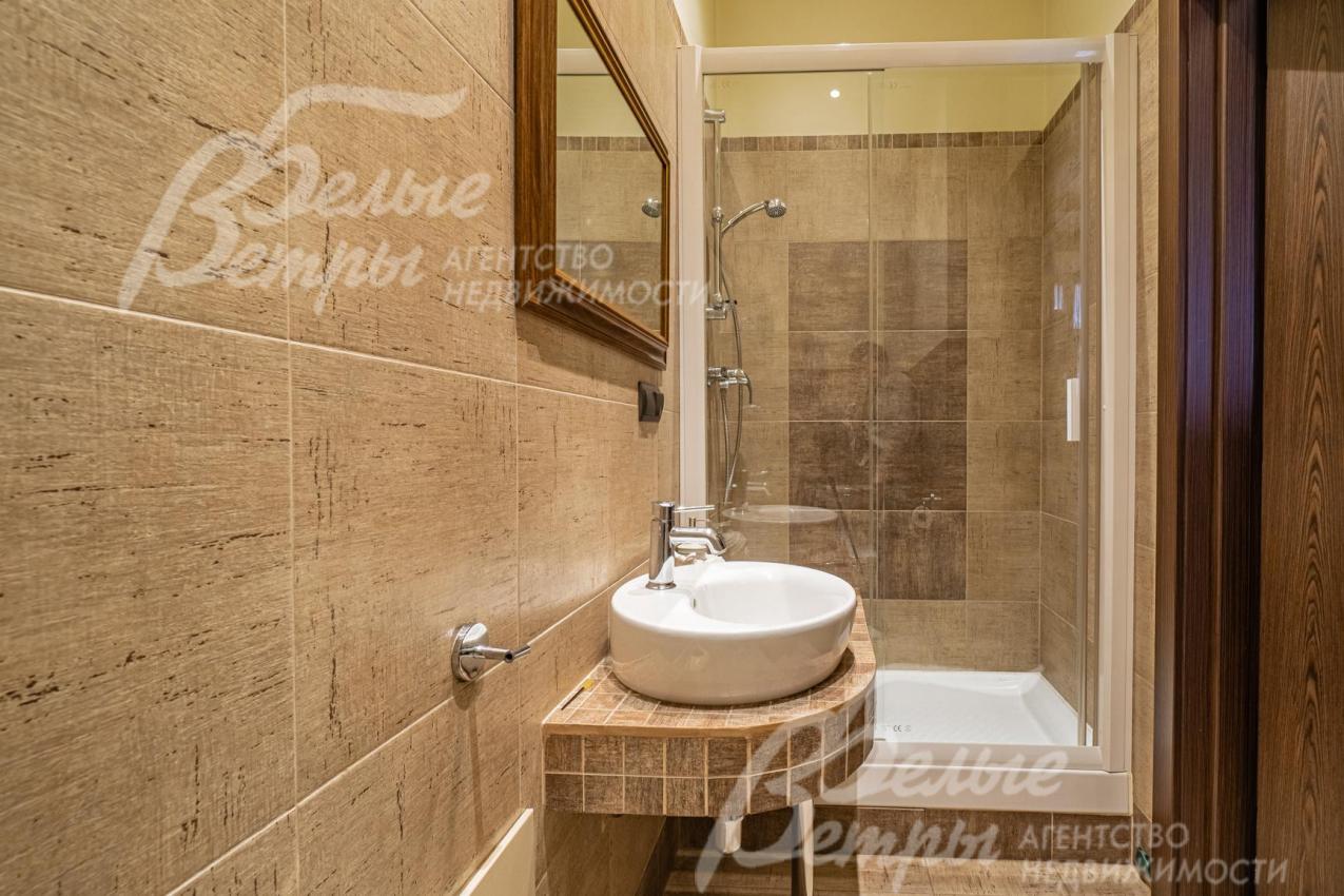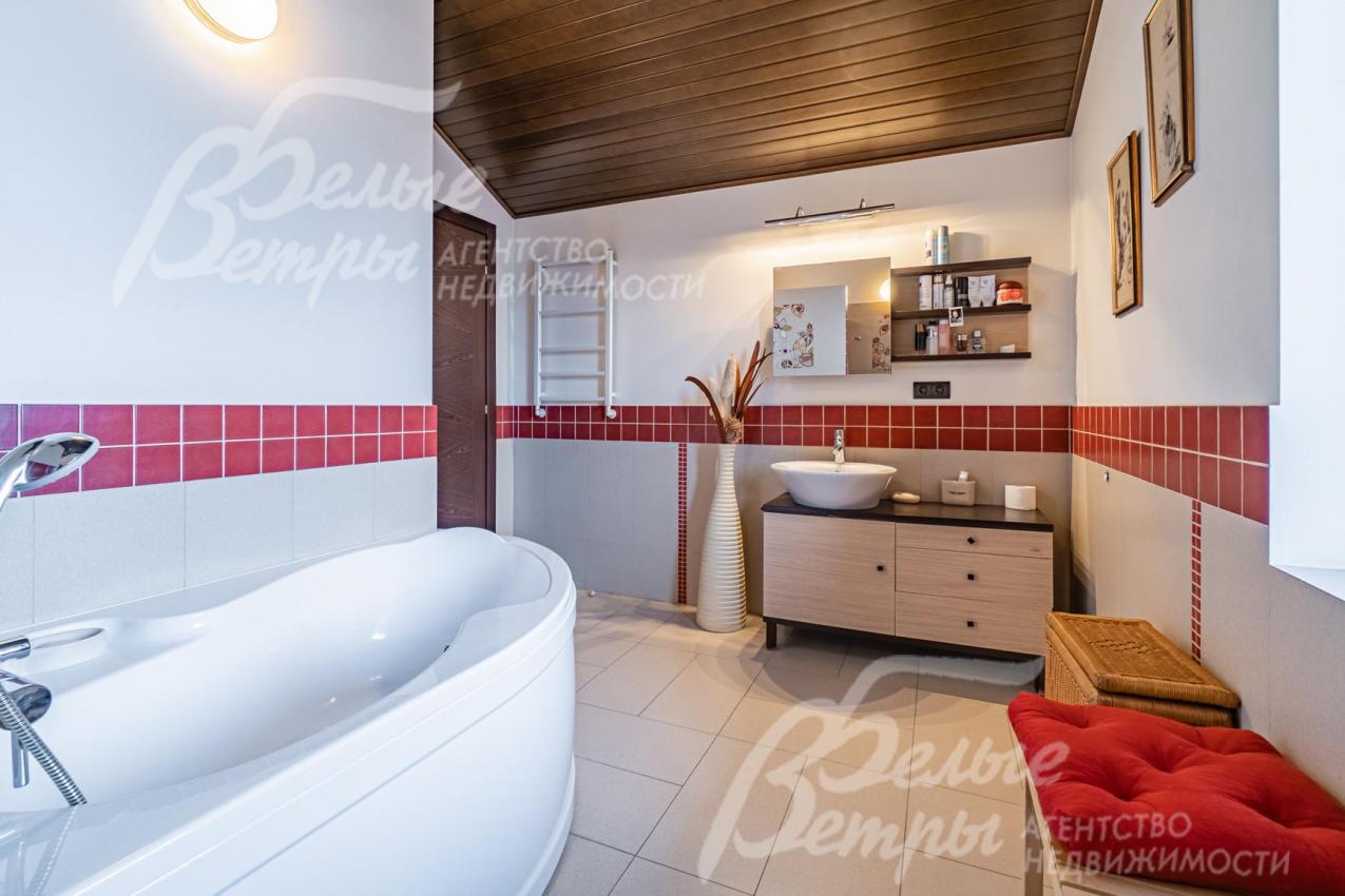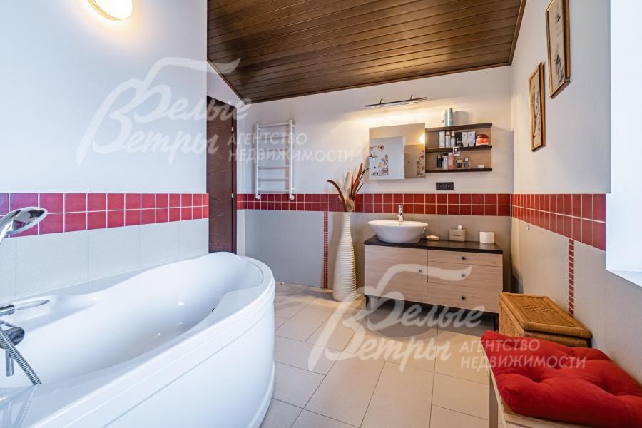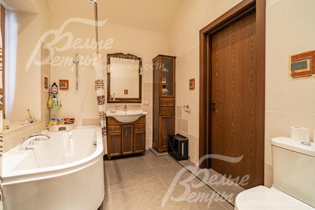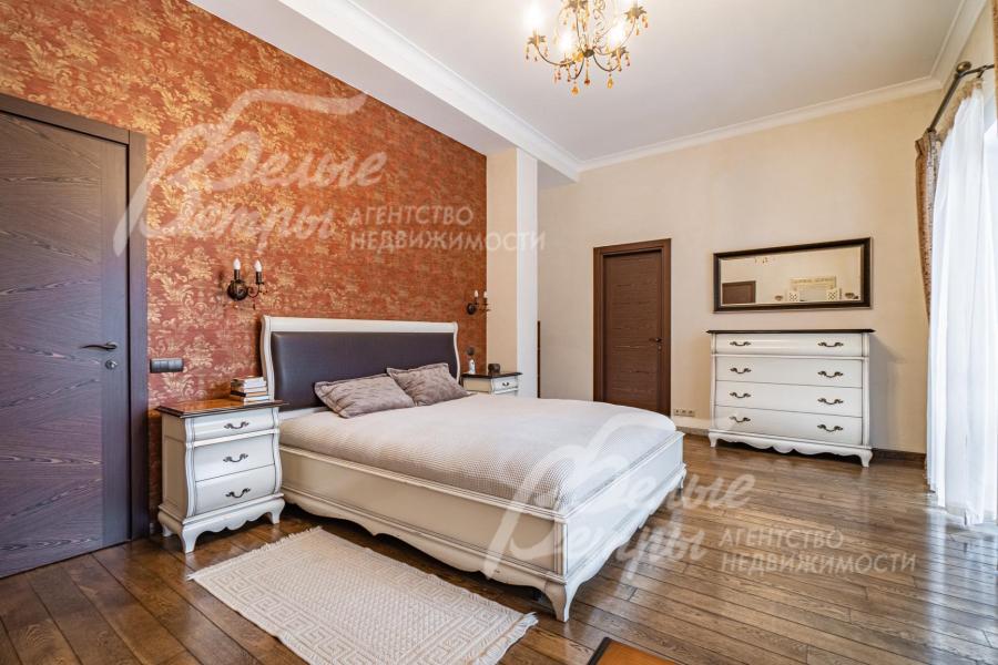 Описание внутренней отделки: отделка выполнена в классическом стиле. На стенах бумажные обои, декоративная штукатурка. Итальянская плитка на полу кухни, прихожей, гостиной и во всех санузлах. В остальных помещениях напольное покрытие из массива дуба. Широкая лестница из массива сосны. Потолки из гипсокартона, отделаны деревянными панелями. Установлена сантехника марок Jacob Delafon и Grohe. Все коммуникации разведены. Водяной тёплый пол везде, где плитка на 1-м этаже и во всех санузлах. В прихожей дизайнерские чугунные радиаторы, в остальных комнатах трубчатые радиаторы Arbonia. Розетки и выключатели Legrand. Межкомнатные двери МДФ ламинированные. Подоконники из ламинированного пластика под светлый дуб.