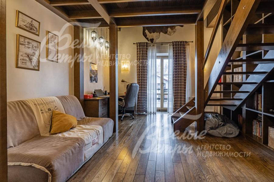 Дополнительная информация о доме: дом выполнен в стиле шале. Монолитный, ленточный фундамент, ж/б плиты перекрытия. Высота потолков: 1 этаж - 3.17 м, 2 этаж - от 2.3 до 3.54 м, антресоль - 2.2 м.