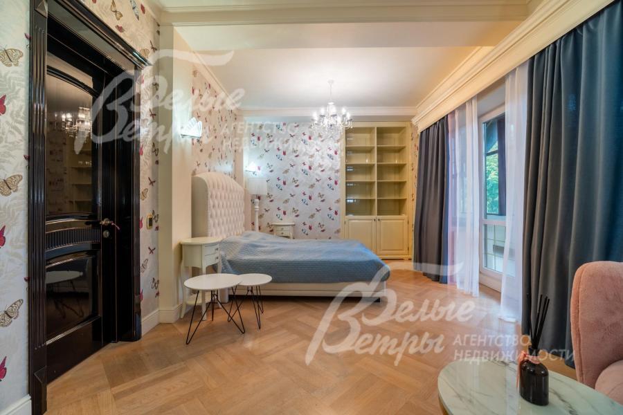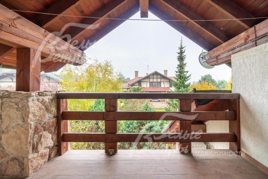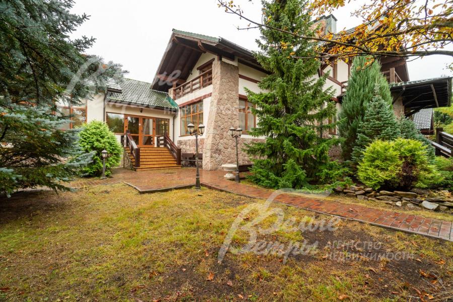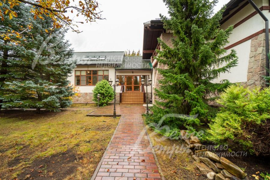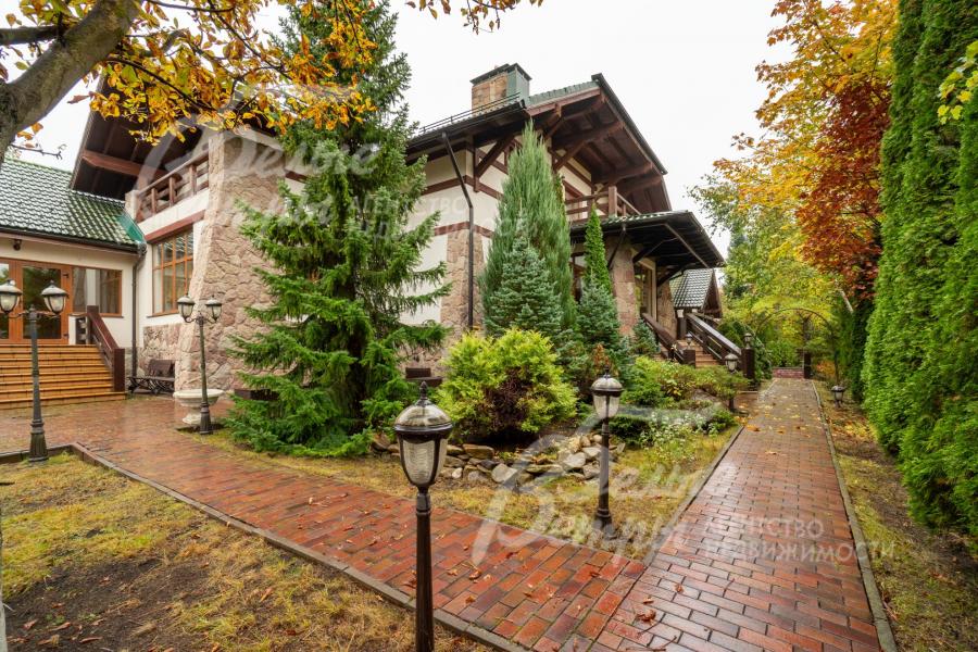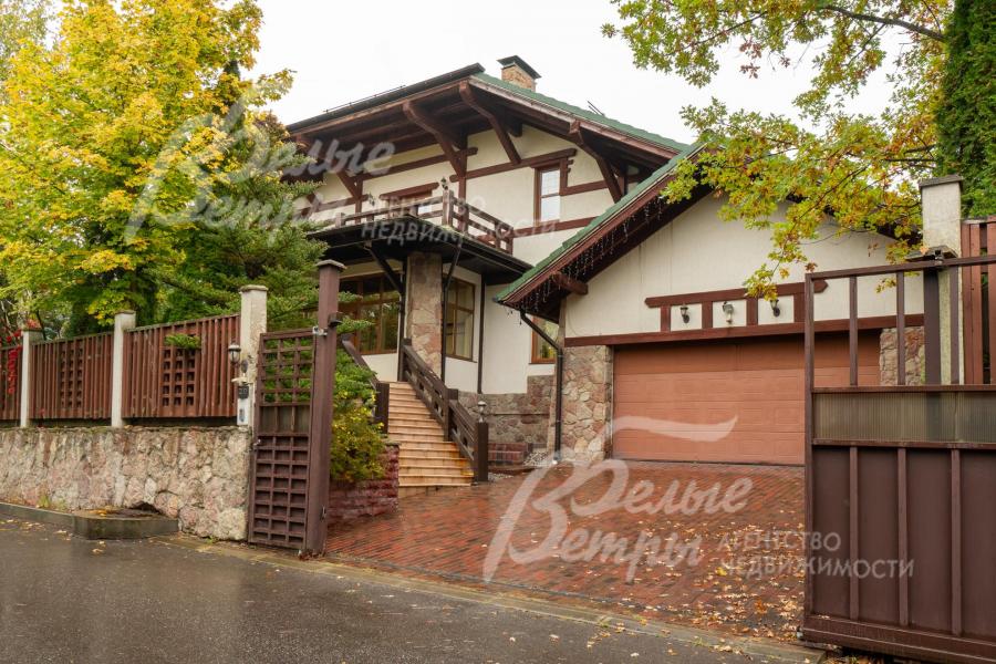 Кирпичный меблированный дом в стиле шале с эффектным фасадом, отделанным натуральным камнем, деревом и штукатуркой. В просторной планировке – 6 спален, спа-зона с сауной и джакузи, бассейн длиной более 20 м с римским входом, противотоком, акварелаксом и водопадом, тёплая терраса с мангалом, летняя терраса, комнаты для персонала. Отделка – в духе ар-деко: в ней сочетаются натуральный оникс, мрамор, травертин, наборный паркет. Дополняют премиальный интерьер открытый камин, дорогостоящая мебель и передовые инженерные решения. Дом стоит на просторном участке с живописным ландшафтом: на территории высажены хвойные, лесные, плодовые деревья, кустарники, туи. Участок находится в камерном охраняемом коттеджном посёлке в 100 м от леса рядом с городской инфраструктурой и Москвой.