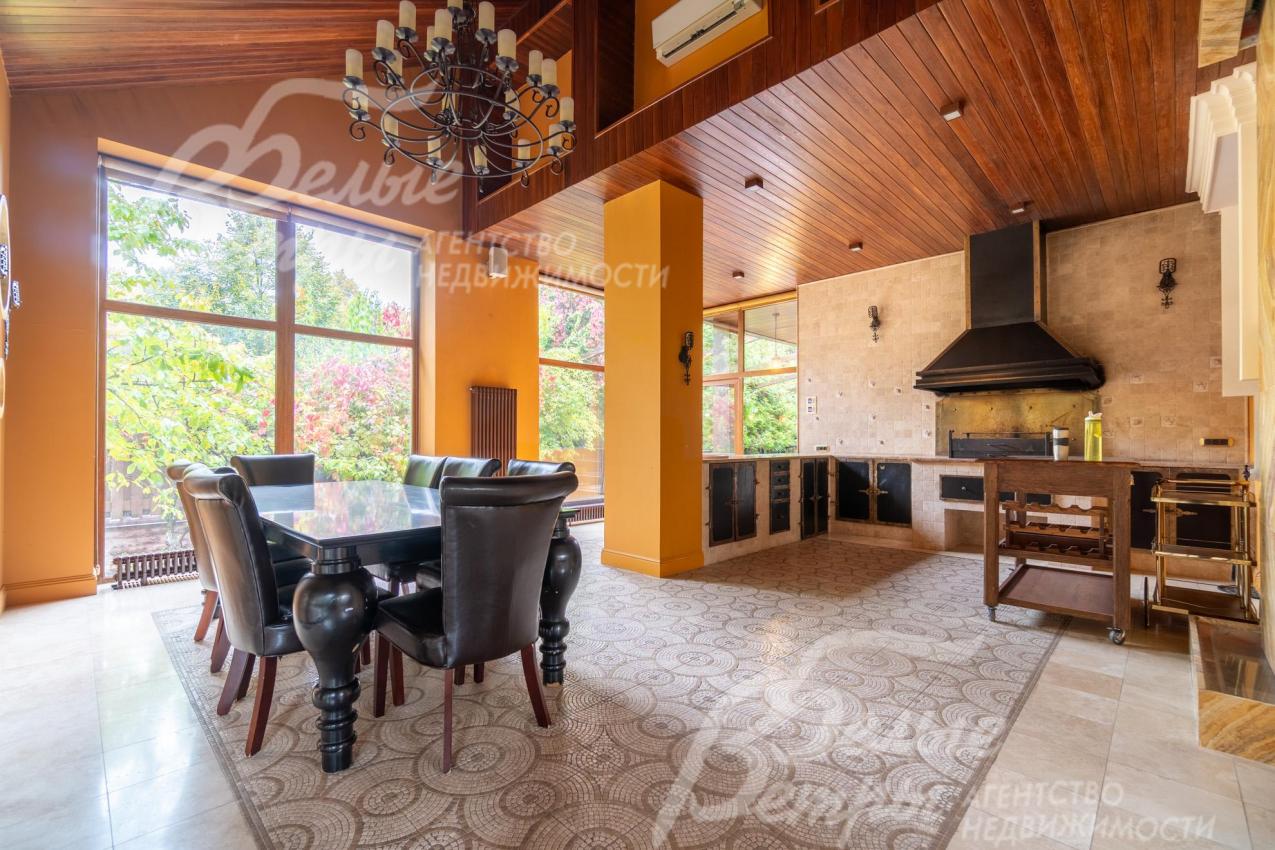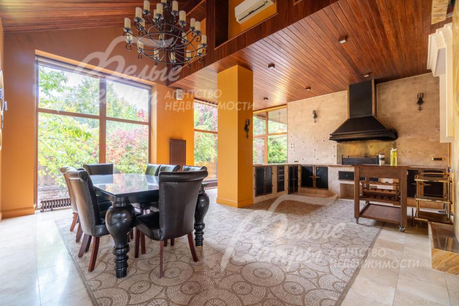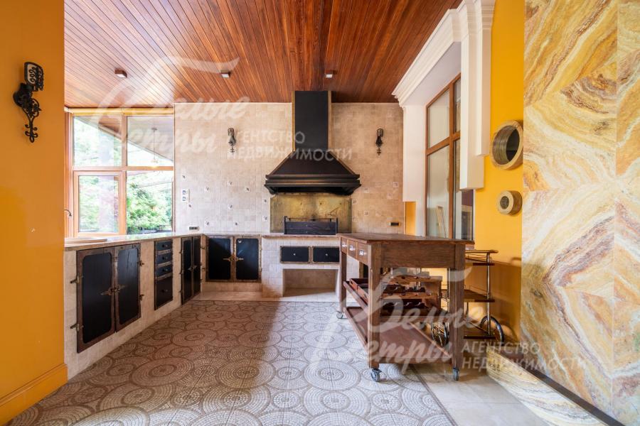 Мебель, оборудование: дом полностью меблирован и оснащён техникой. На кухне – гарнитур Francesco Molon (Италия) из массива дерева с мраморной столешницей Emperador Dark, встроенная техника Kuppersbusch, в том числе комбинированная варочная панель (газовая и индукционная), 2 холодильника Liebherr. Встроенные шкафы в кабинете и холле, мебель и гардеробная в мастер-спальне сделаны на заказ из массива ангарской сосны. В других комнатах – мебель ведущих производителей Италии. В санузлах – премиальная сантехника Vileroy&Bosh и Jacob Delafon. На тёплой террасе (барбекю) – обеденная группа на 8 персон со столом из массива дерева и кожаными стульями, кухонная мебель, изготовленная на заказ, с медными элементами отделки и мраморной столешницей, мангал с вытяжкой