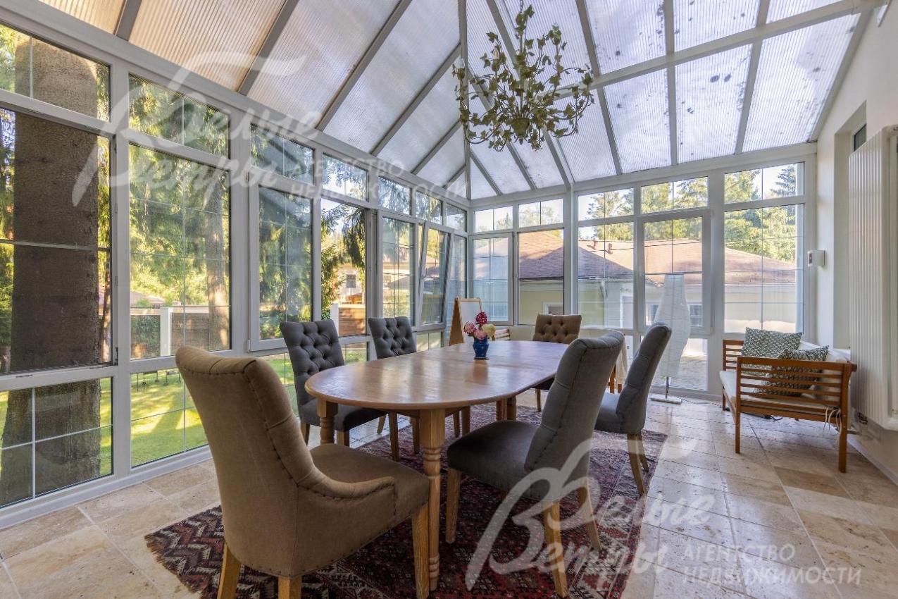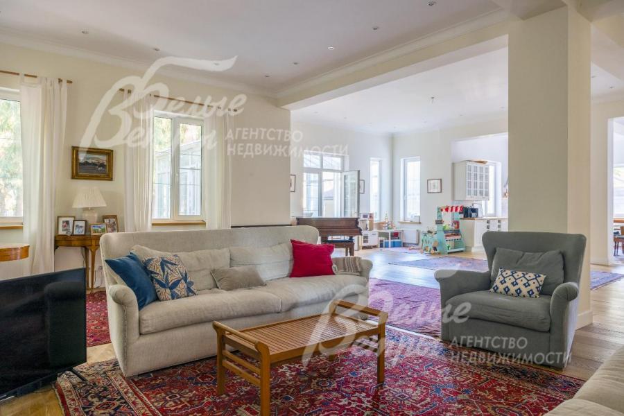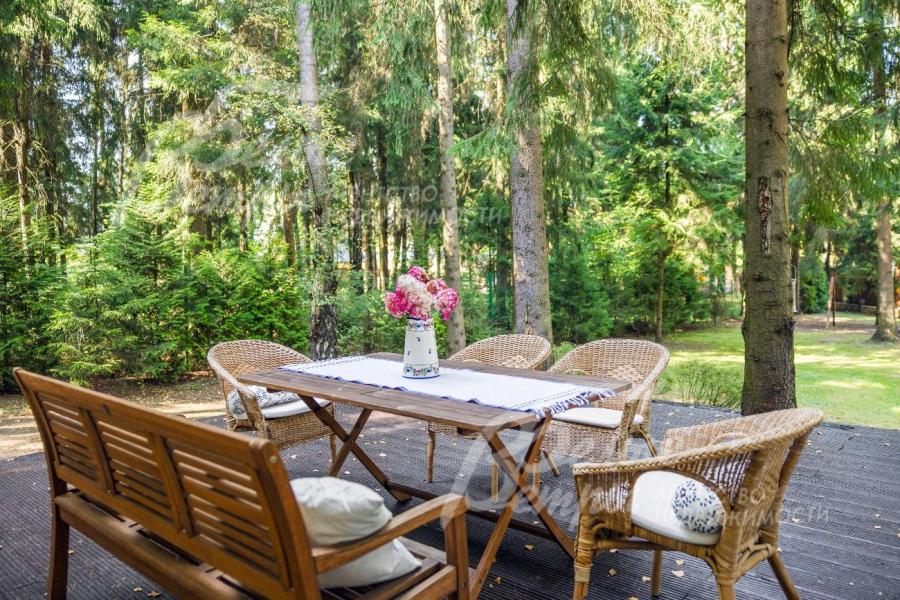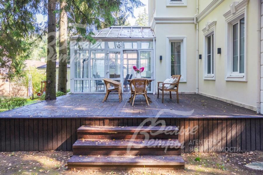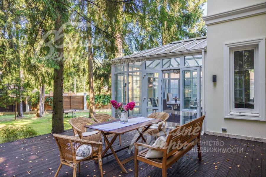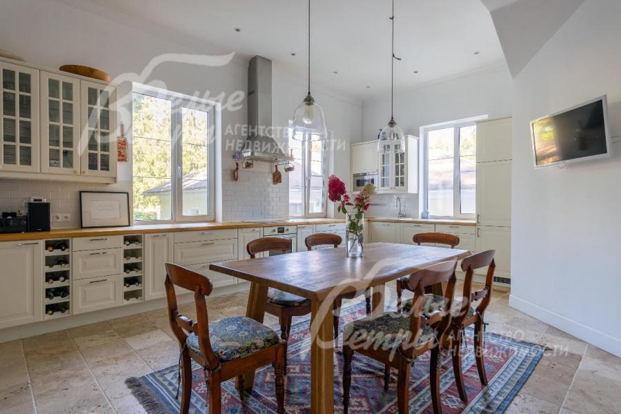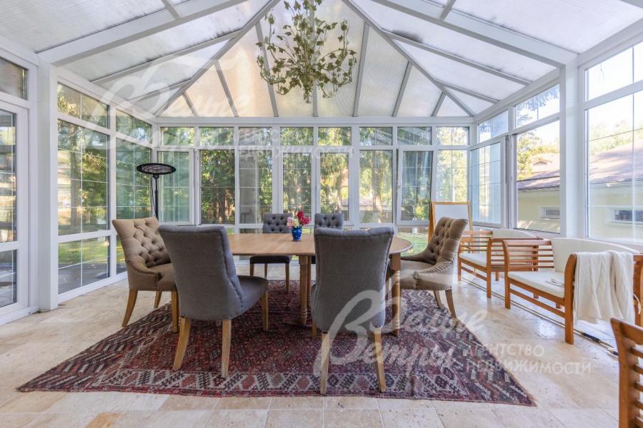 Уютный, светлый, просторный дом под ключ 733 кв.м на лесном участке 27 соток в СНТ «Вузсервис», всего в 19 км от МКАД, в окружении живописного елово-соснового леса. Со вкусом выполненная отделка в светлых тонах, просторные помещения, высокие потолки, удобная планировка. Благодаря большим окнам в интерьере всегда много естественного света. В доме уютная гостиная с большим камином и антикварным английским деревянным порталом, современная кухня, объединённая с гостиной, отапливаемый зимний сад и просторная летняя терраса с летней мебелью и выходом в сад, отдельный этаж под кинотеатр c проектором и экраном, игровая комната и фитнес зона. На шикарном лесном участке также расположен гостевой дом с гаражом. В поселке есть футбольное поле, детская площадка и небольшой пруд, где дети любят кататься на коньках и санках зимой.