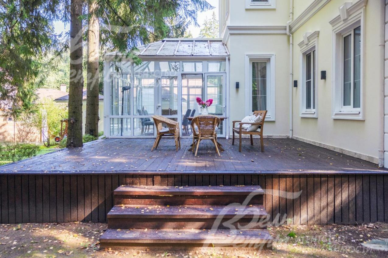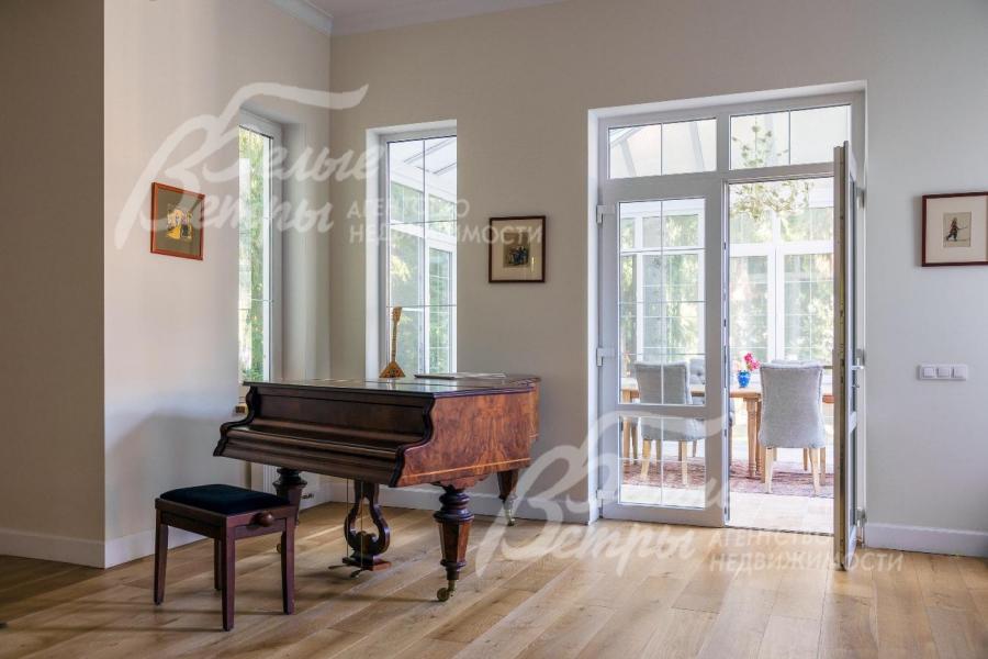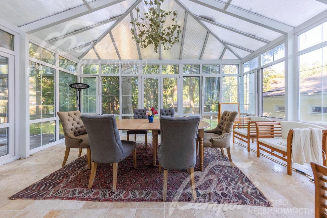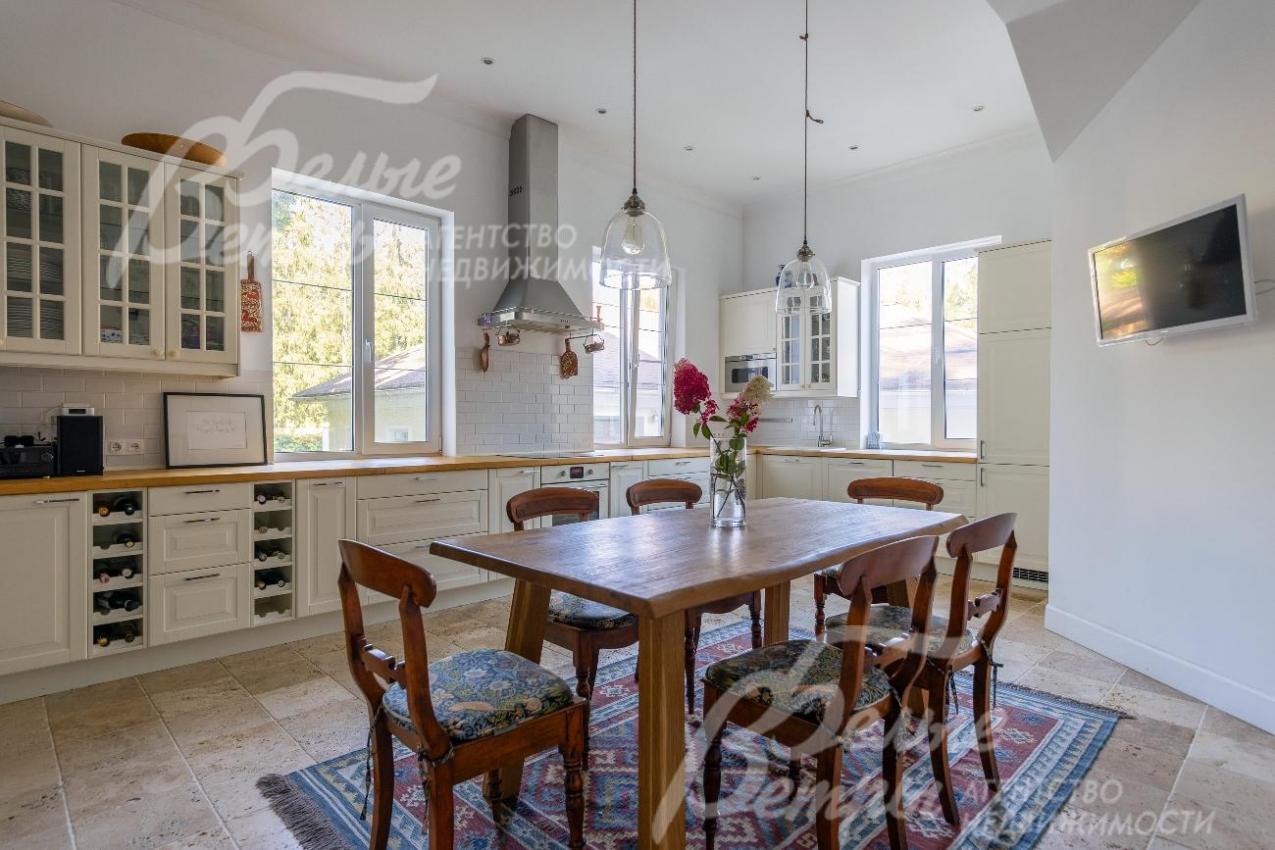 Уютный, светлый, просторный дом под ключ 733 кв.м на лесном участке 27 соток в СНТ «Вузсервис», всего в 19 км от МКАД, в окружении живописного елово-соснового леса. Со вкусом выполненная отделка в светлых тонах, просторные помещения, высокие потолки, удобная планировка. Благодаря большим окнам в интерьере всегда много естественного света. В доме уютная гостиная с большим камином и антикварным английским деревянным порталом, современная кухня, объединённая с гостиной, отапливаемый зимний сад и просторная летняя терраса с летней мебелью и выходом в сад, отдельный этаж под кинотеатр c проектором и экраном, игровая комната и фитнес зона. На шикарном лесном участке также расположен гостевой дом с гаражом. В поселке есть футбольное поле, детская площадка и небольшой пруд, где дети любят кататься на коньках и санках зимой.