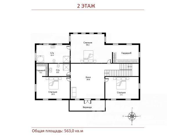 балкон, просторная мастер-спальня 48 кв.м с ванной комнатой 19 кв.м и гардеробной, две детские спальни 19 кв.м и 19.5 кв.м, ванная комната 8 кв.м