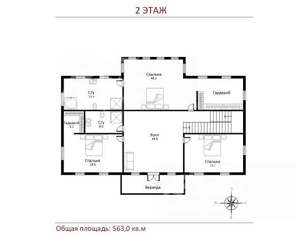 Спален: 4. С/узлов полных: 3. С/узлов неполных: 1. Комнат всего: 5.