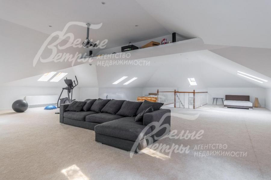 3-ий этаж: мансарда 160 кв.м - кинотеатр c проектором и экраном, игровая комната, фитнес зона c эллиптическим тренажером NordicTrack Commercial 14.0