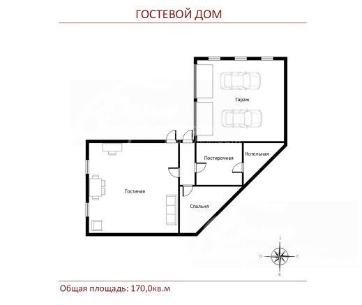 Общая площадь строений: 733 м2 (Основной дом 563 кв.м + Гостевой дом 170 кв.м)