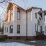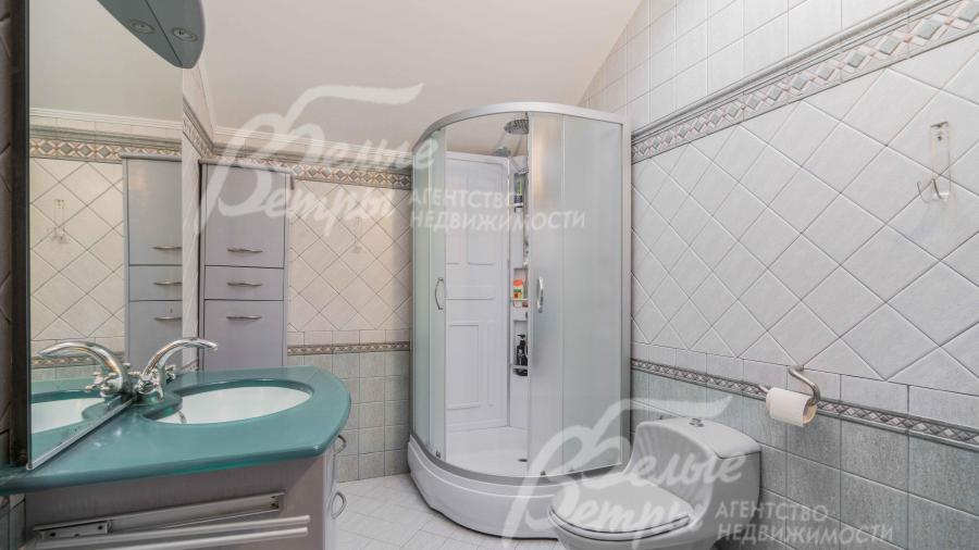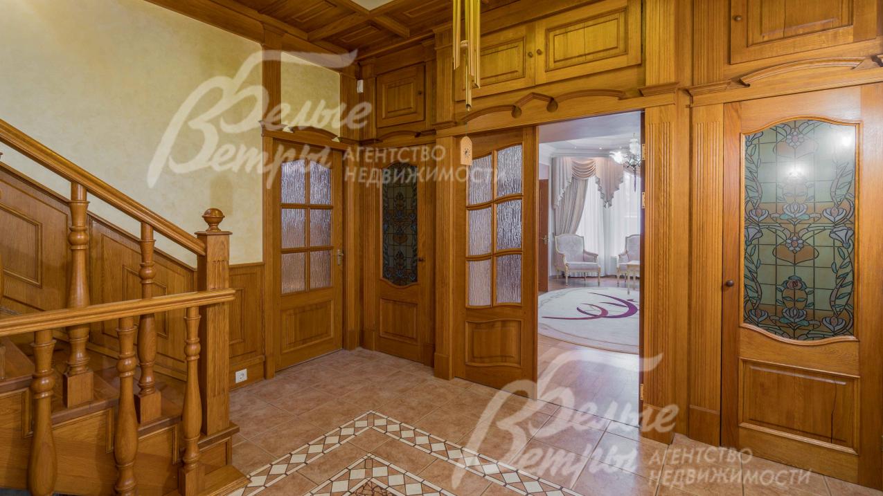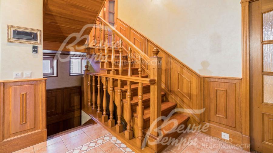 Описание внутренней отделки: отделка выполнена в классическом стиле. Стены холла и лестничное пространство обиты массивом дуба; в гостиной, на кухне, в столовой и спальне на первом этаже - декоративная штукатурка со вставками из обоев, украшенные по бортам молдингом. Спальни на втором этаже оклеены обоями. В прихожей, на кухне, а также на цокольном этаже на полу плитка, в столовой, гостиной и спальнях - паркет. Лестница деревянная из массива дуба шириной 1 метр с удобным подъемом. Многоуровневые потолки со встроенным освещением. В холле, кабинете и на цокольном этаже - витражи. Установлена качественная сантехника марок G-lauf, Porcher и французская сантехника. Все коммуникации разведены под ключ. Розетки Legrand, теплые полы на первом этаже в прихожей, холле, на кухне и в санузле, а также на всём цокольном этаже. Радиаторы биметаллические в столовой, спальнях и гараже. Межкомнатные двери из массива дуба, сделаны в одном стиле с лестницей.