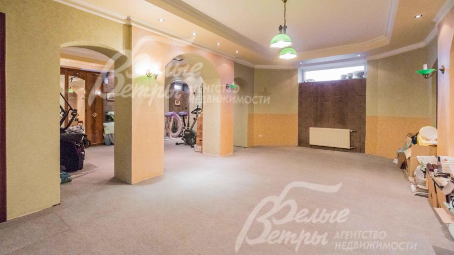 Цоколь: просторная бильярдная комната 38 кв.м, спортивный зал 17 кв.м, предбанник 20 кв.м с джакузи, баня 8 кв.м, постирочная 6 кв.м, котельная 9 кв.м, оружейная комната 3 кв.м с сейфом, гостевой санузел, помещение очистки воды для дома 5 кв.м.
