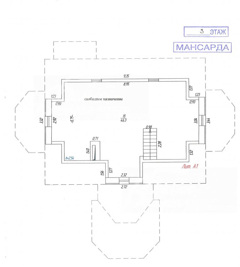 3-ий этаж: Площадь свободного назначения 46 кв.м