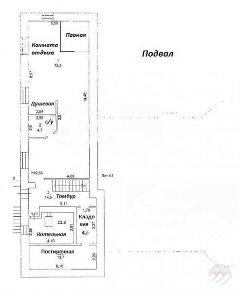 Цоколь: комната отдыха 73 кв.м с душевой и парной, с/узел 5 кв.м, котельная 11 кв.м, кладовая 6 кв.м, постирочная 14 кв.м