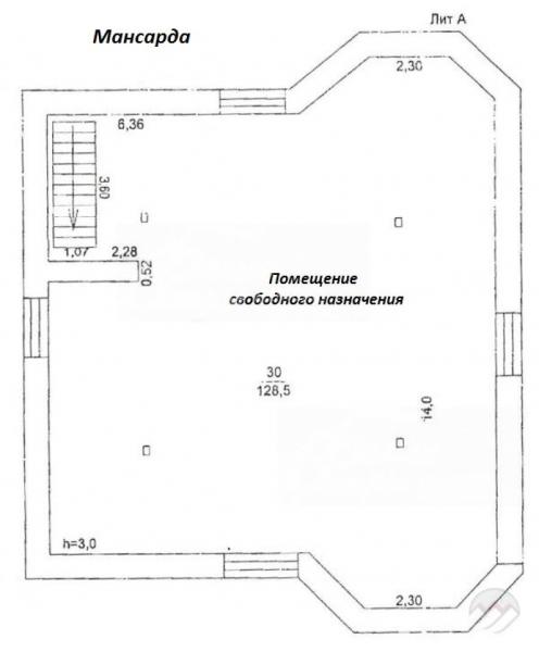 3-ий этаж: мансарда - помещение свободного назначения 129 кв.м